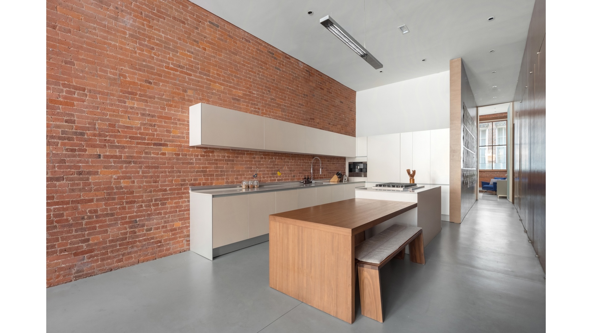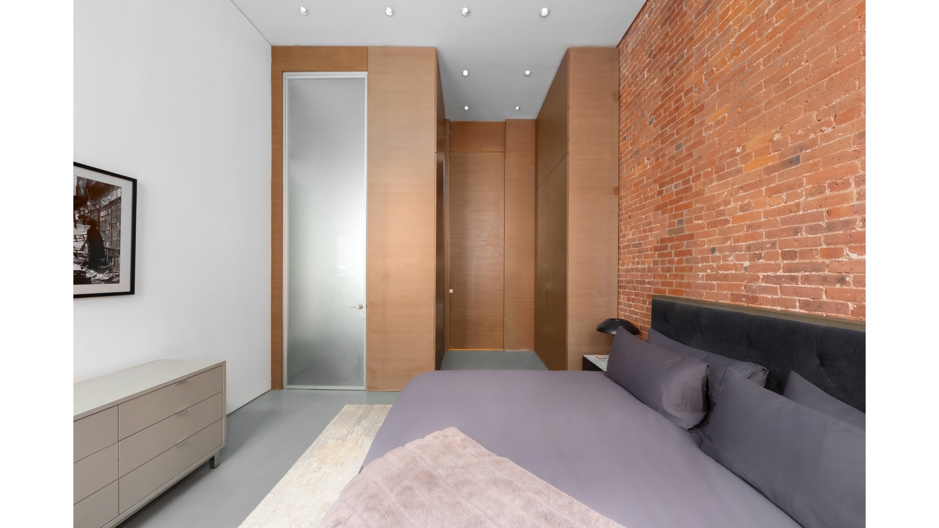 The grand living dining area is deigned for both effortless and everyday comfort, with impressive scale and flexibility rarely found in todays market. Oversized windows invite soft natural light, enhancing the texture of the brick and amplifying the sense of openness throughout. The thoughtfully configured layout preserves privacy between bedrooms while maintaining a fluid connection to the main living spaces.