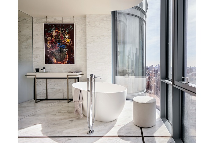 Unlike any other property in SoHo, 565 Broome SoHo offers the luxury and convenience of a private covered porte cochere with automated parking, expansive views and 17,000 square feet of amenities. 565 Broome SoHo provides the intimacy of a boutique SoHo building with the exceptional views and amenities of a full-service modern condominium. As the tallest residential property in SoHo, the building's design has been thoughtfully conceived to reflect the neighborhood's rich history while taking full advantage of its stunning views and light.Keyed elevator access in the tower of the building, which is comprised of only 22 residences, provides exclusivity for all residents. Each residence features a private elevator landing opening directly into a formal entry foyer.