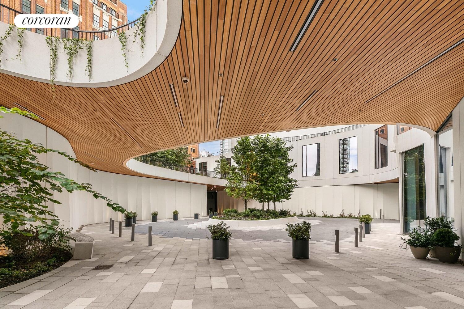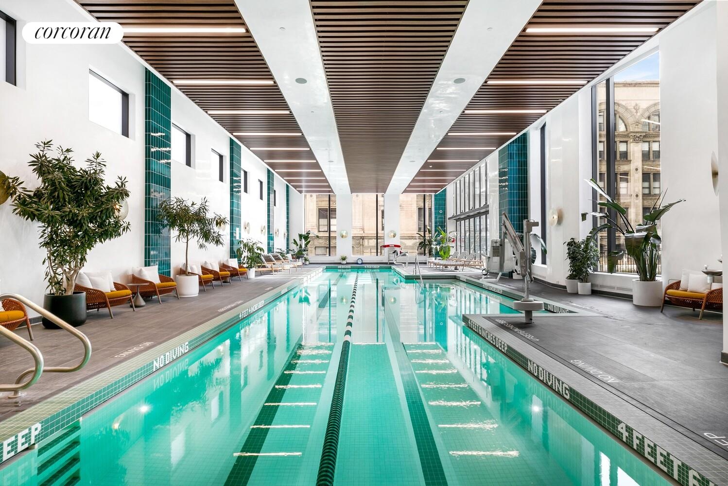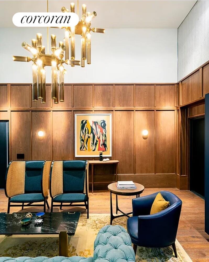 Designed by Jeanne Gang's Studio Gang with interiors by Michaelis Boyd Associates and landscape architecture by Hollander Design, 11 Hoyt offers residents unparalleled amenities including a 27,000 sq ft elevated private park with multiple barbeque grills, a state-of-the-art fitness center with Peloton bikes, yoga, cardio and strength training rooms, a squash court and 75-foot saltwater pool, outdoor hot tub, children's playroom and playground, co-working lounge, cinema, double-height Sky Lounge, multiple game spaces, and a private dog run.