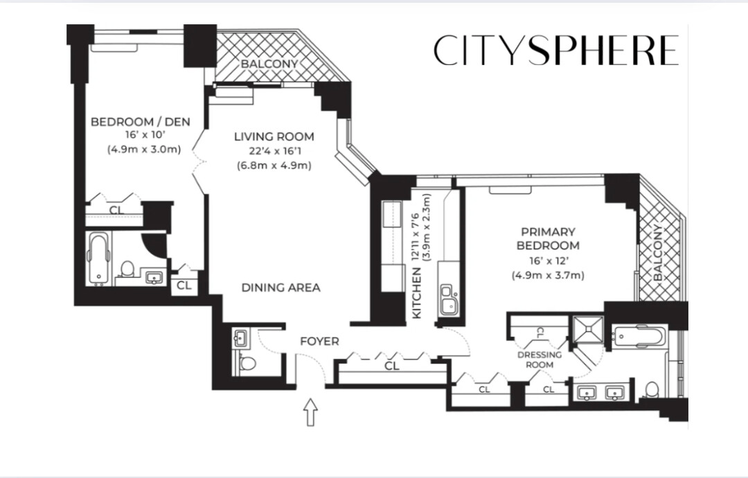 This 2-bedroom, 2.5-bathroom residence is thoughtfully designed with a separate-room layout that ensures privacy and comfort. Both bedrooms feature ensuite bathrooms, creating two serene retreats within the home. The primary bedroom enjoys its own private balcony, while the second balcony opens from the living space, inviting you to step outside and savor the breathtaking skyline.