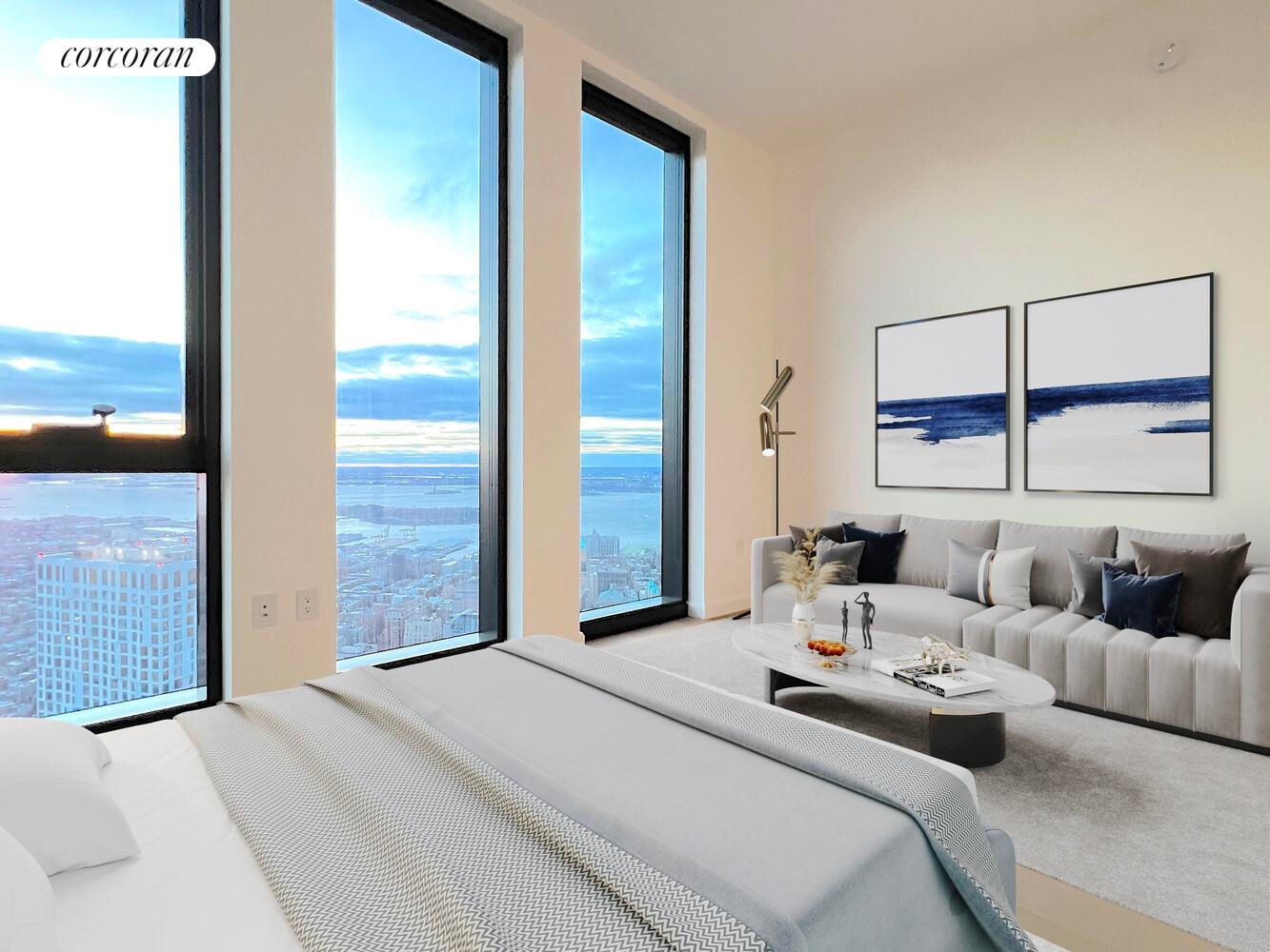 Brand New never lived in beautiful home. Wide open Ocean view and beautiful Sunset at 70 stories above ground, this lovely home brings luxury living style to a whole new level. Located at the tallest luxury building The Brooklyn Tower in Downtown Brooklyn, this beautiful home comes with high ceiling, floor-to-ceiling windows, kitchen with high end appliance and cabinetry, hardwood floor and marble bathroom. Besides mesmerizing open ocean view, The Brooklyn Tower also has over 120,000 square feet of amazing amenities including: