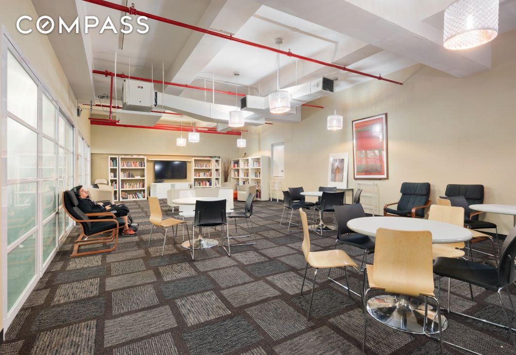 Residents enjoy amenities including 24-hour concierge service, attended package rooms, two recently upgraded landscaped roof decks, a live-in superintendent, a newly updated gym with state-of-the-art equipment, yoga room, media room with kitchen, children’s playroom, bike room, five elevators, valet parking, and storage (both available for a fee).