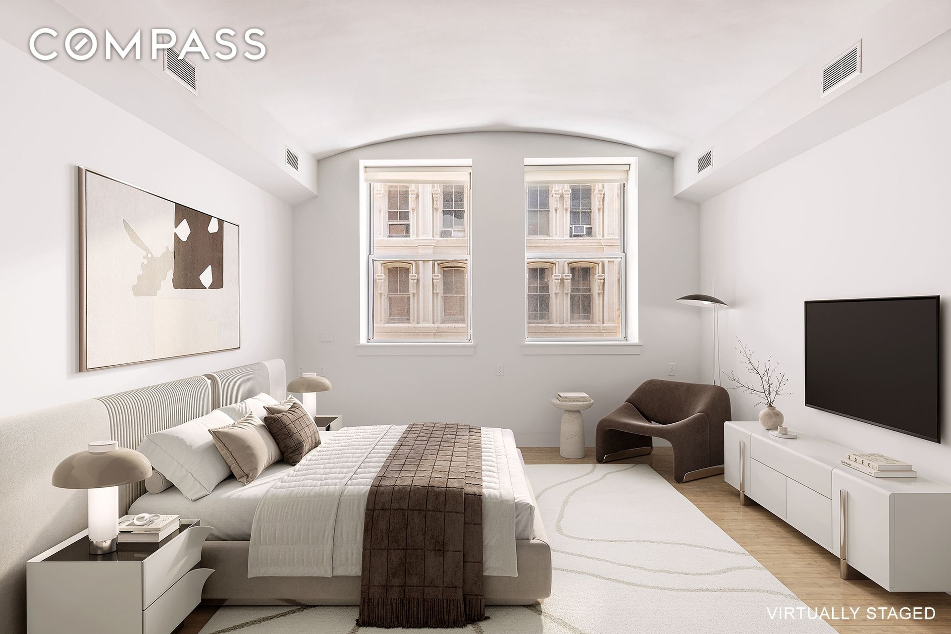Encompassing 2,753 square feet of masterfully reimagined interiors, this three-bedroom, three-and-a-half-bathroom residence is a triumph of design and proportion, where 12-foot vaulted barrel ceilings and walls of oversized windows evoke the grandeur of the building’s industrial heritage while ushering in streams of eastern and northern light. Every detail has been executed with an uncompromising commitment to artistry, luxury, and refinement.
