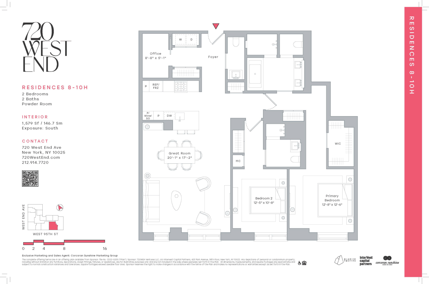 Designed by renowned architect and designer Thomas Juul Hansen, Residence 9H is a premium south facing two-bedroom, two-bathroom with powder room overlooking the tree-lined streets of the Upper West Side. Highlighted by the timeless character of yesterday and the compelling minimalist styling, modern conveniences and technologies of tomorrow, each home at 720 West End Avenue is unique. Celebrate an abundance of natural light, and open, flowing space in each residence.