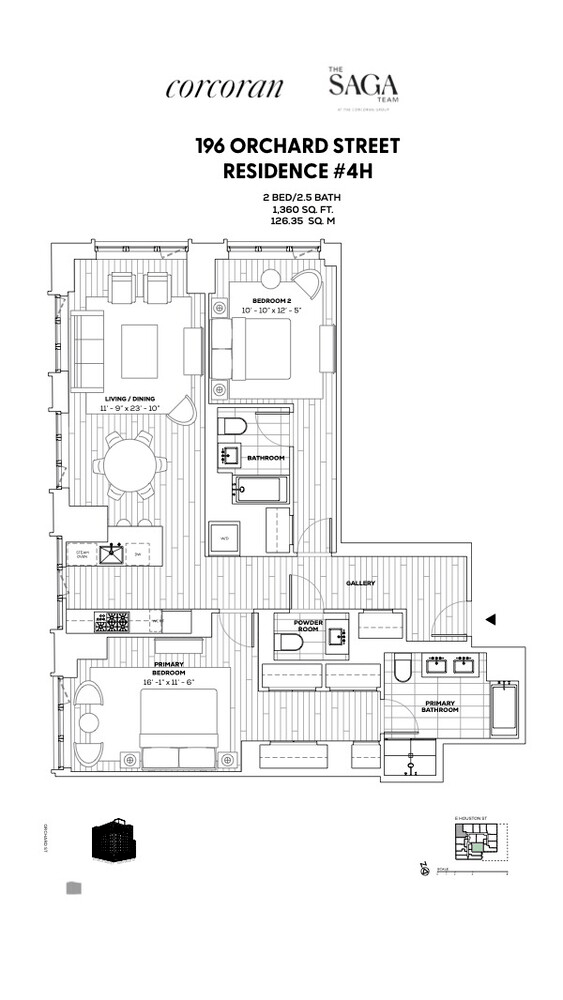 A quintessential New York corner view that instantly feels like home. Residence 4H is a sun-filled corner home spanning 1,360 square feet, offering two bedrooms, two full baths, a powder room and an abundance of closet space. Thoughtfully designed for both comfort and effortless entertaining. Oversized bronze-framed casement windows wrap the home in northern and western light, framing open city views and bathing the interiors in natural sunlight throughout the day. Option to purchase in-building storage unit.