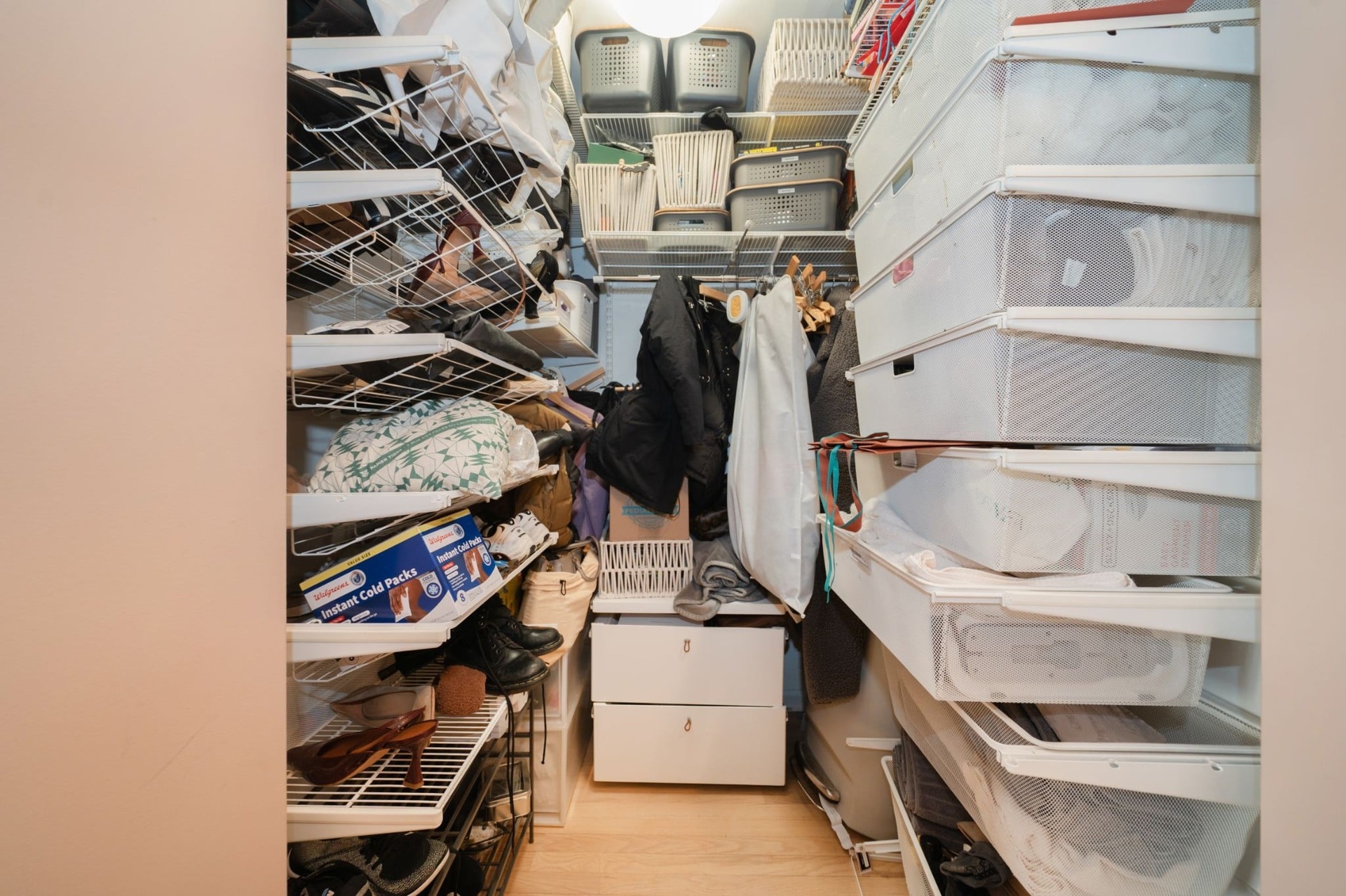 Upstairs, the lofted level functions as a comfortable primary suite, with enough scale for both sleeping and workspace. A large walk-in closet adds substantial storage, complemented by additional closets throughout the home.