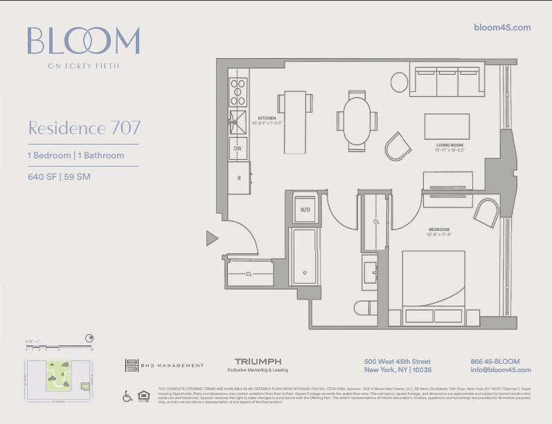 The complete offering terms are available in an offering plan from Successor-Sponsor, file no. CD18-0180 (“Offering Plan”). Sponsor: DOF II-Bloom Resi Owner, LLC, 56 West 22nd Street, 10th Floor, New York, NY 10010 (“Sponsor”). Equal Housing Opportunity.