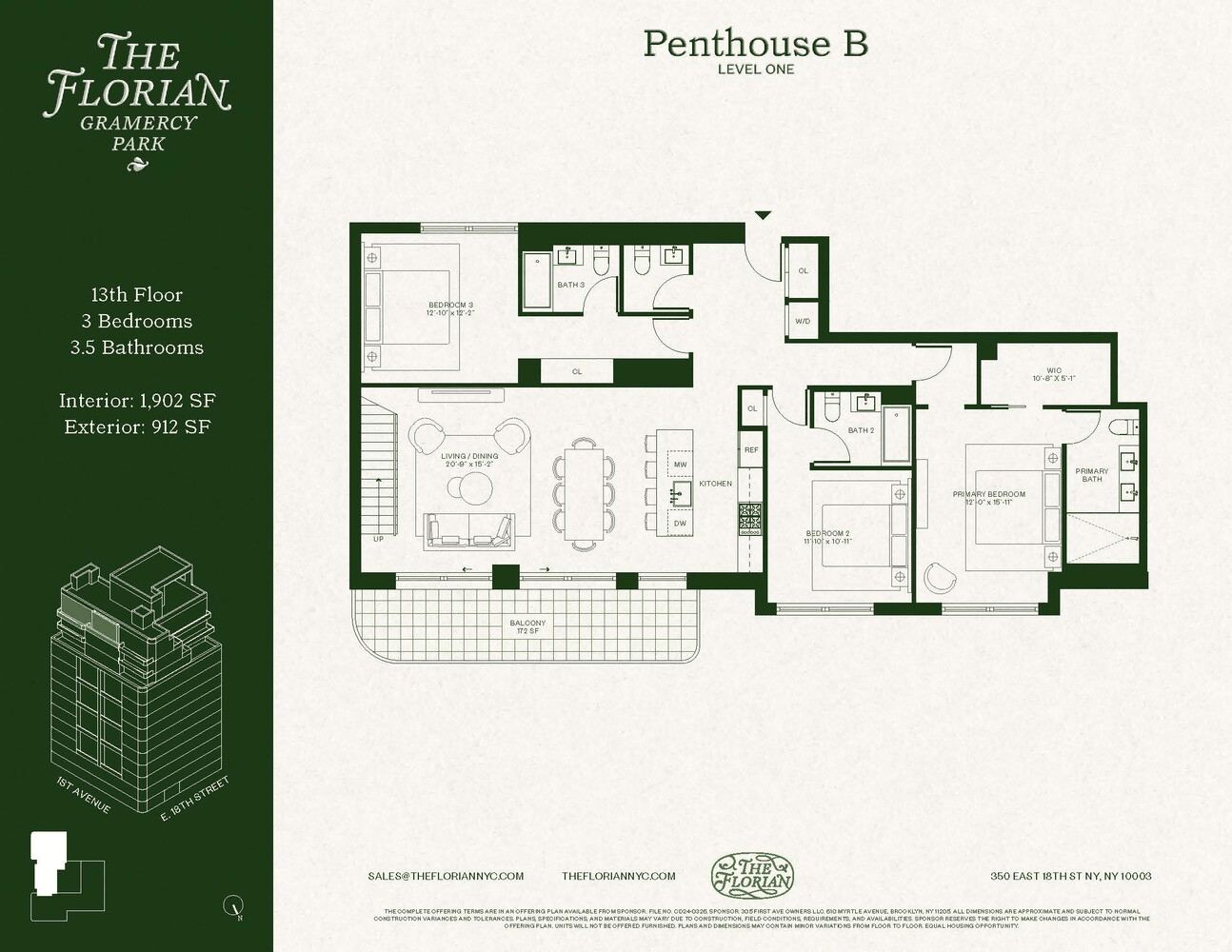 Discover Penthouse B at The Florian, a remarkable three-bedroom, three-and-a-half-bath residence offering 1,902 square feet of meticulously designed interiors and an impressive 912 square feet of private outdoor living. Two expansive terraces, including a 740-square-foot private rooftop with a fully equipped outdoor kitchen, create a seamless connection between indoor comfort and open-air sophistication.