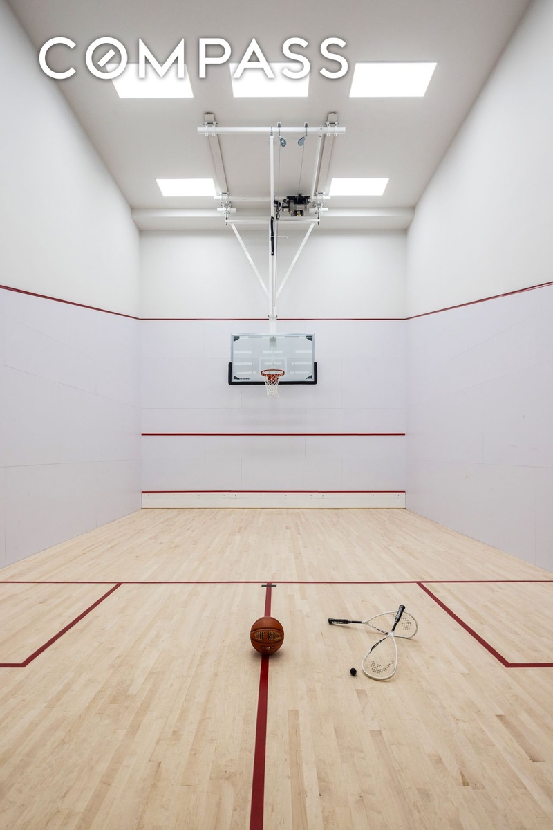 Residents enjoy a 75-foot saltwater lap pool, fitness center with Pilates reformers, landscaped rooftop terrace with outdoor cinema and separate grilling areas, regulation-size squash court with basketball hoop, private dining room with catering kitchen, music room, children’s playroom, club room and pet grooming station.