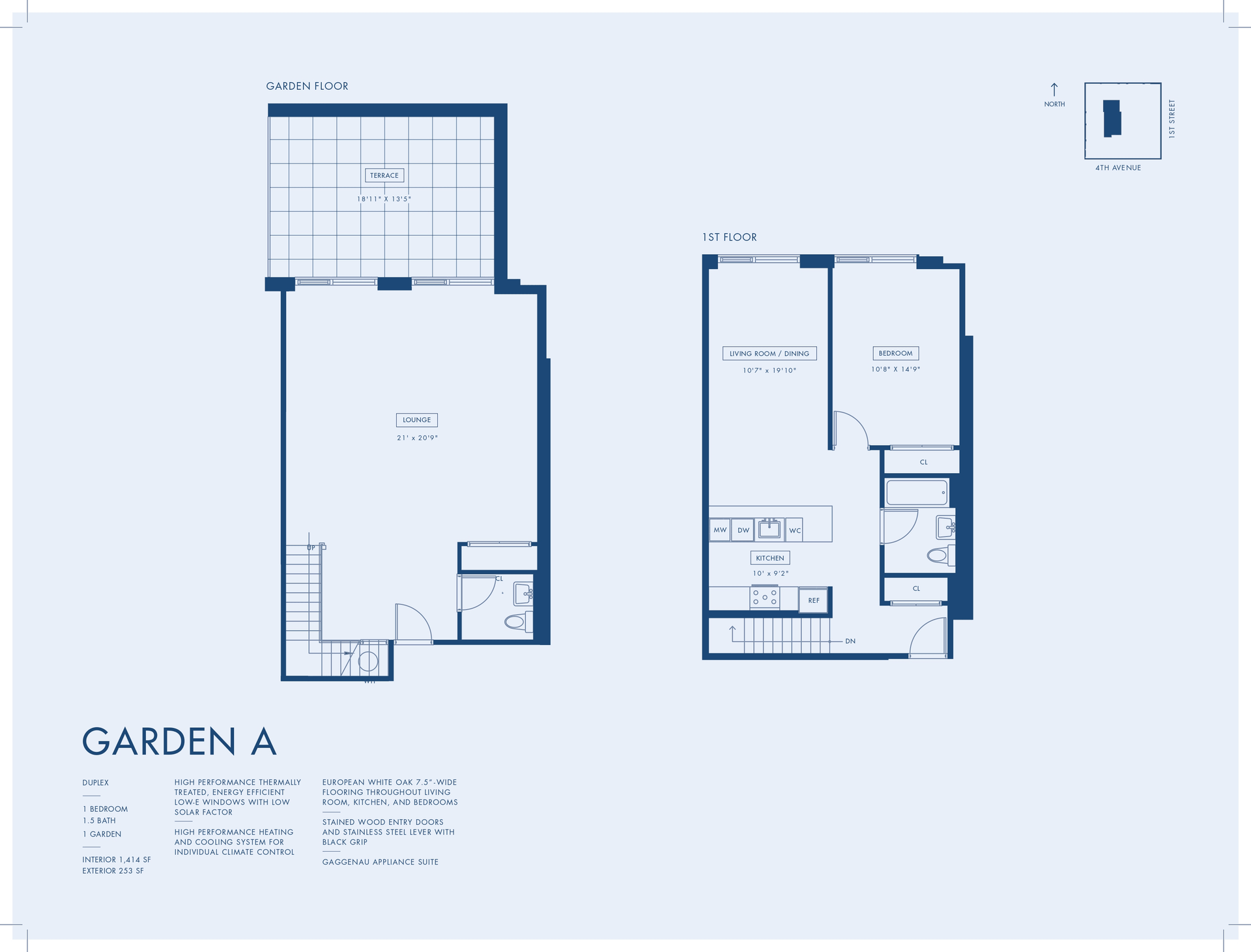 Welcome to 1A at 251 1st Street, a breathtaking Garden unit designed by ODA that blends contemporary design with unparalleled craftsmanship. This legal 1 bedroom (converted to a 3 bed), 2 bathroom residence features an impressive 1,414 SF interior floorplan, sophisticated finishes, a spacious terrace and floor-to-ceiling glass windows, allowing abundant natural light to fill the space. With 9'4" ceilings, every room feels open and airy, offering a perfect balance of style and function in one of Brooklyn's most sought-after neighborhoods.