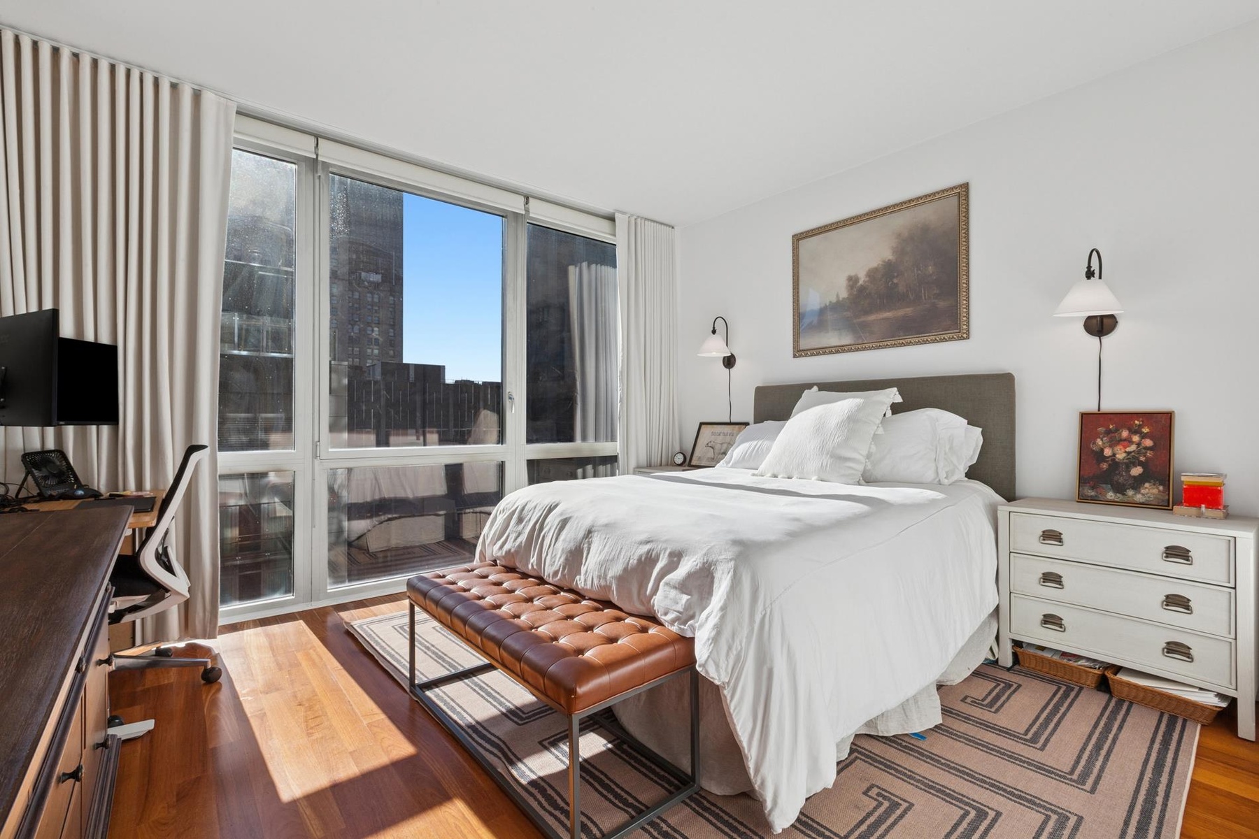 Both bedrooms are generously proportioned with impressive ceiling heights and floor-to-ceiling windows, creating an airy, loft-like feel while maintaining excellent privacy and views.