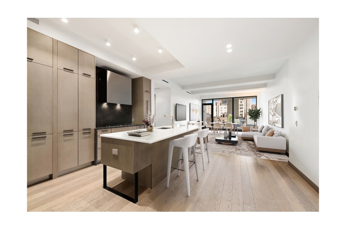 Thoughtfully imagined by the acclaimed architects at Workshop/APD, this luminous residence is a masterclass in modern luxury. The open-concept living and dining areas are flooded with natural light and made for entertaining or unwinding in style. The custom chef's kitchen is as functional as it is stunning, featuring sleek European oak cabinetry, antique gray marble backsplash, polished glass composite countertops, and top-tier appliances from Sub-Zero and Bertazzoni. Every inch reflects curated quality and refined taste.