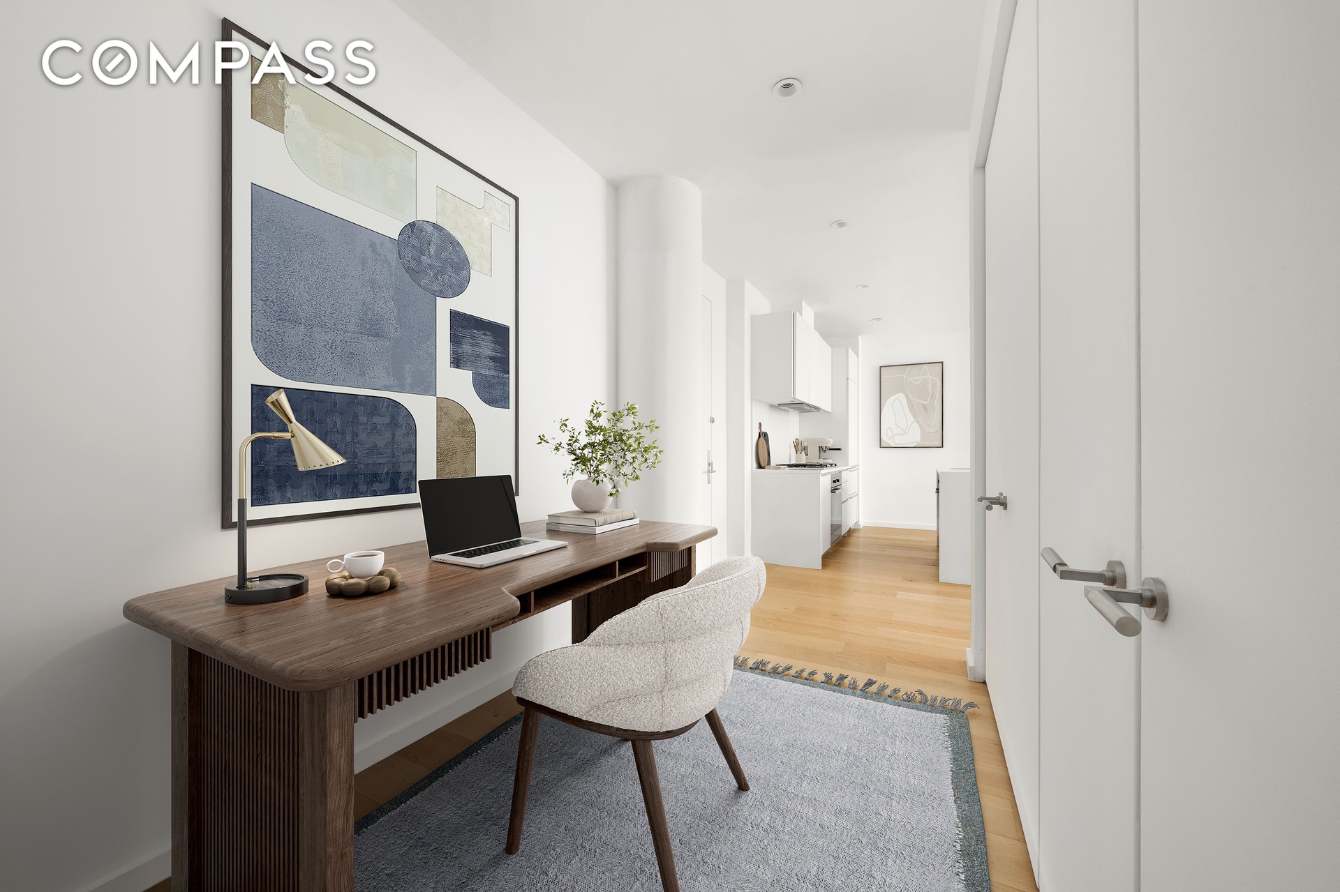 Unit 4E3 is a spacious one-bedroom, two-bathroom dream with floor-to-ceiling windows, a sleek Bulthaup kitchen with Miele appliances, and spa-inspired Italian stone bathrooms. European White Oak floors, oversized doors, and exposed ceilings complete the perfect blend of style and sophistication. Central HVAC and an in-unit washer/dryer add effortless convenience.