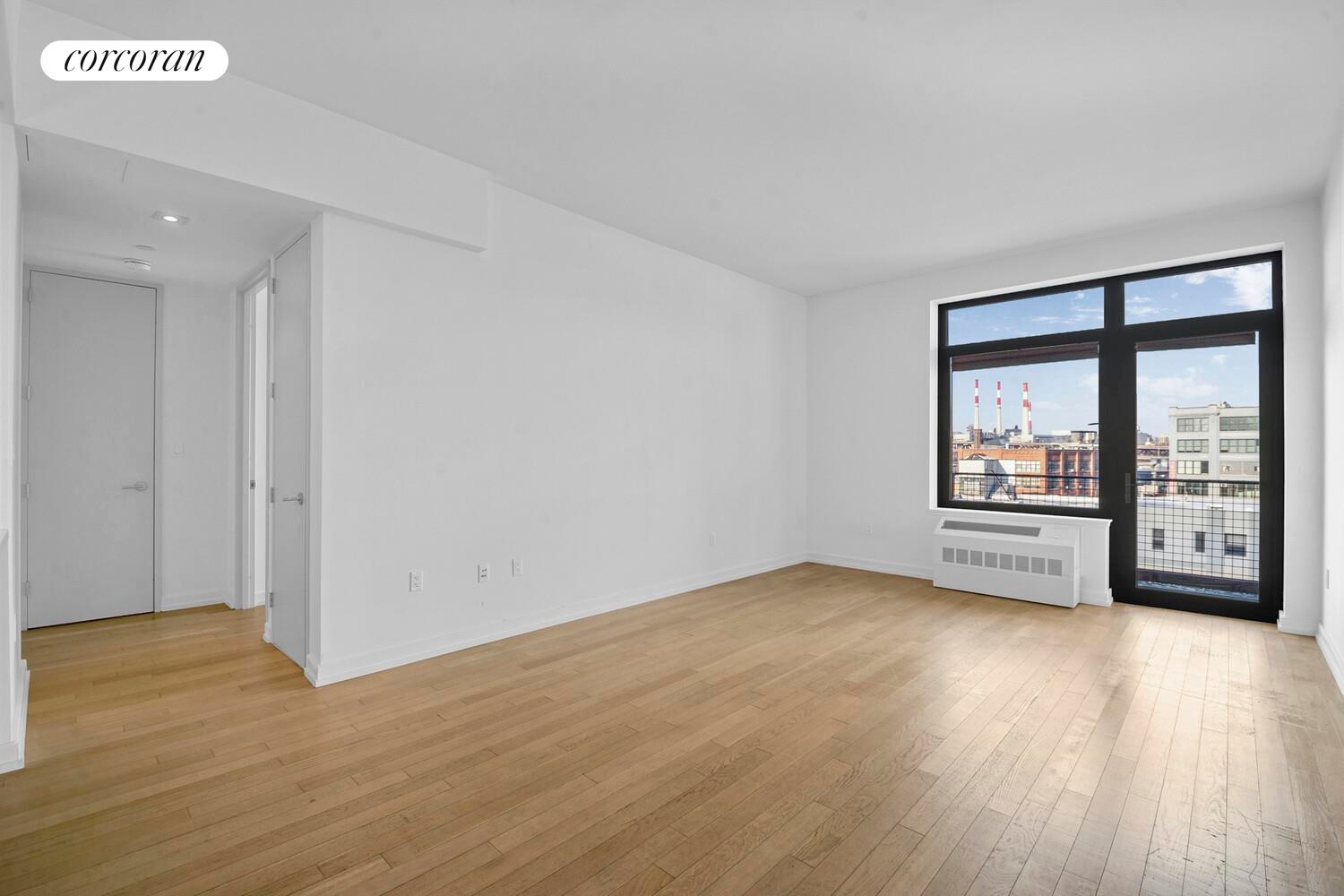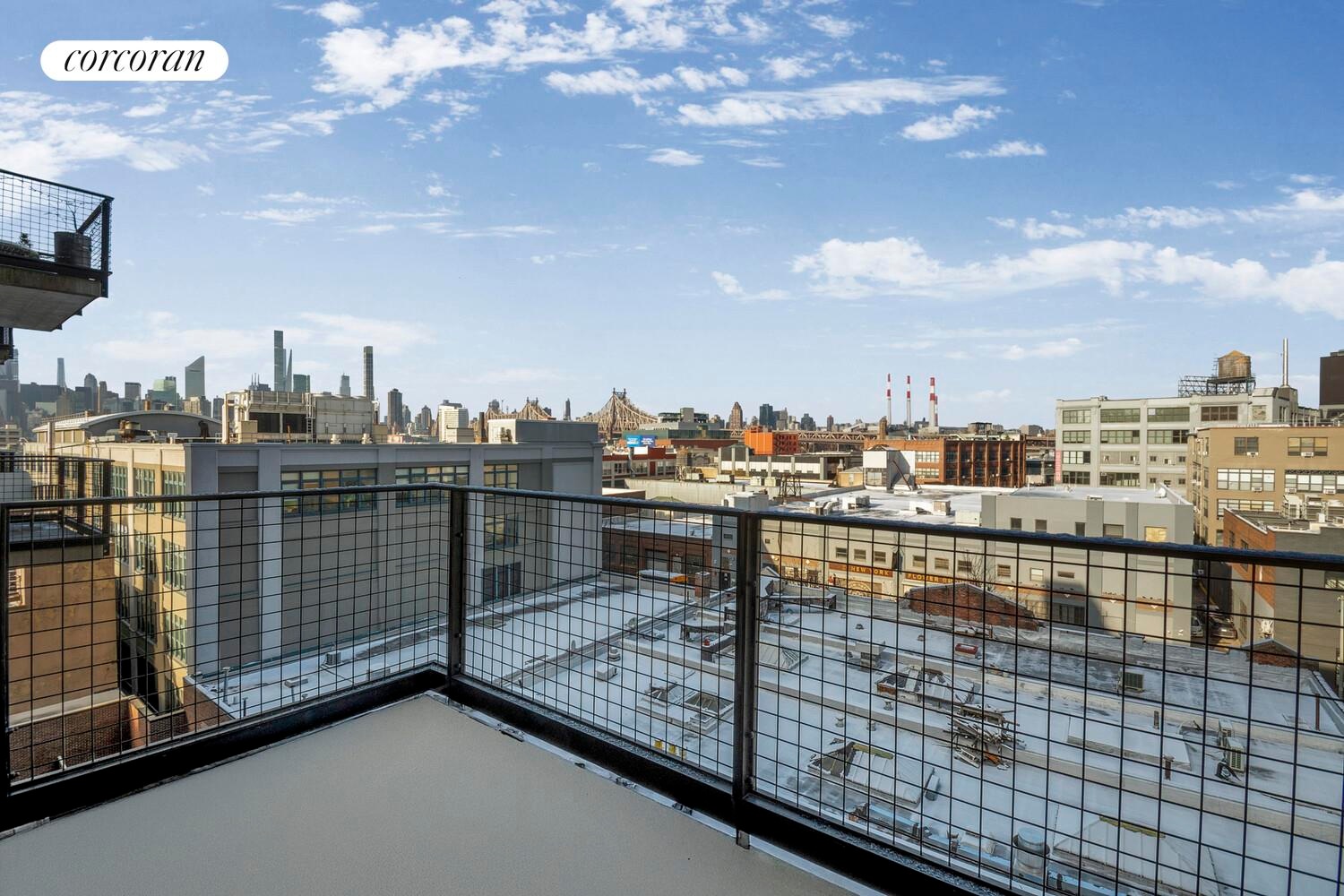 Featuring a large balcony, high ceilings, oversized windows framing skyline views of Long Island City and Manhattan, in-unit washer/dryer. A storage unit is included for this apartment.