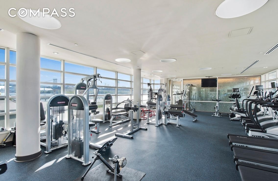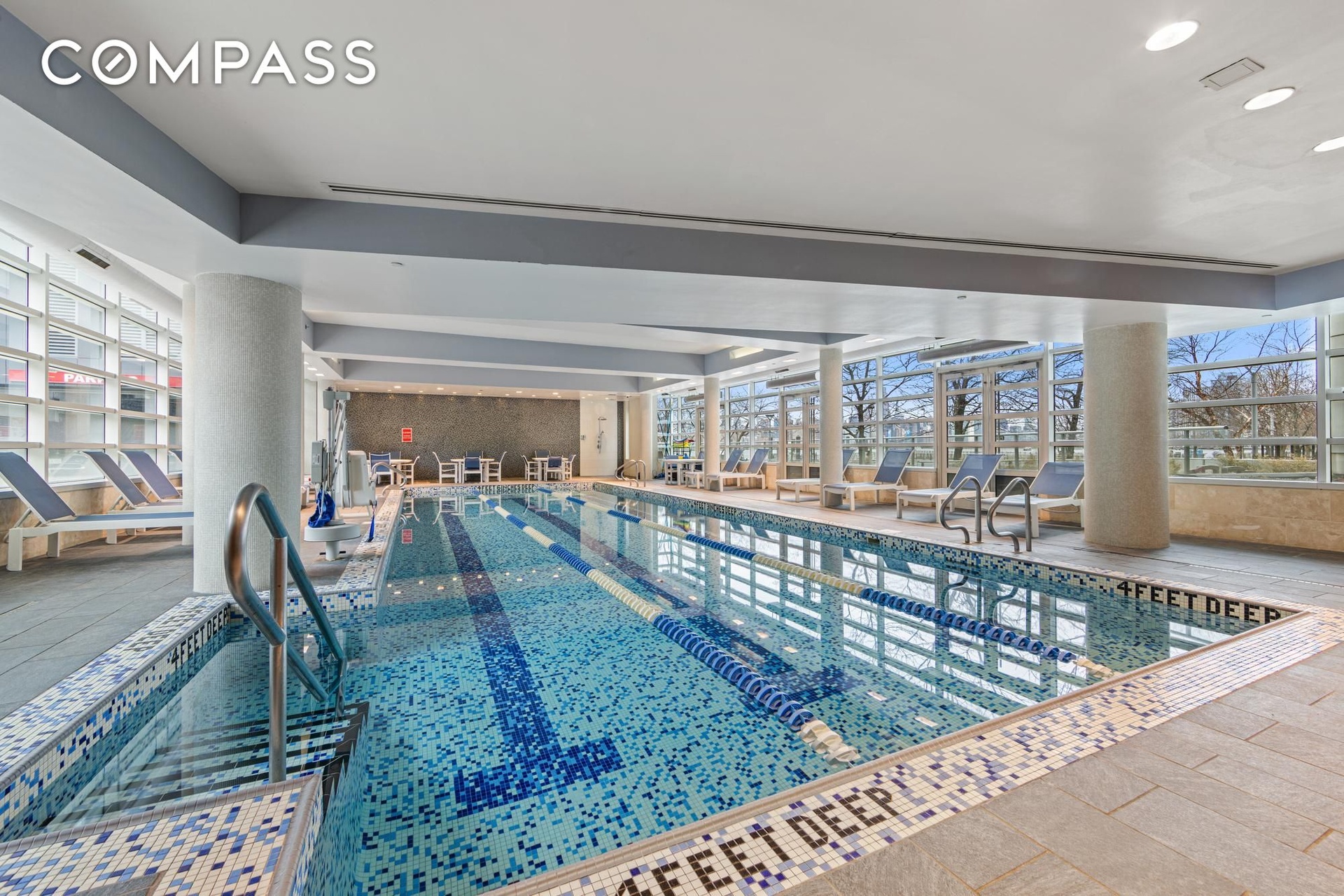 The building delivers on every level: a heated indoor pool with an ozone filtration system, hot tub, and sauna anchor a wellness suite that goes well beyond what most full-service buildings offer. A state-of-the-art fitness center with dedicated yoga studio, residents' lounge, children's playroom, private screening room, and a landscaped roof deck and terrace with unobstructed waterfront views complete the amenity package. Full-time doorman, concierge, valet parking, bike room, cold storage for grocery deliveries, and on-site parking round out the services.