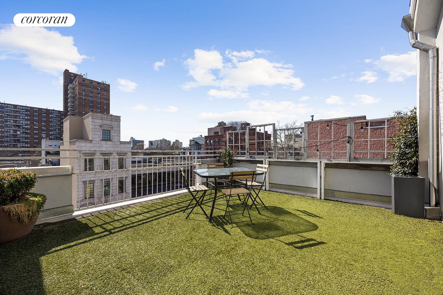 267 8th Street, 4L is a stunning, light strewn, loft like 2 bed (currently being used as a 3 bed), 2 bath Condo with soaring ceilings and a spacious terrace! As soon as you step inside the scale of the great room captivates. There is plenty of room for even the most oversized furniture and cathedral ceilings and oversized windows with both Southern and Western exposures add to the light and airy feel. Along the sunny southern exposure are two large windows with sliding glass doors in between accessing your lovely terrace beyond. An attractive triangular fixed window above the sliders adds a sculptural element to the space, and acts as an architectural focal point. Out on the terrace you'll have plenty of space for al fresco dining and gilling out, and your plants will love the sunshine from their southwestern facing home!