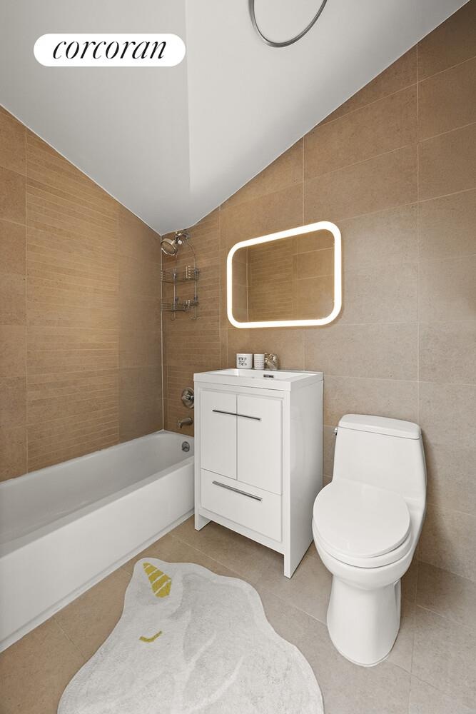 Upstairs are two more rooms, both of which are separated from the rest of the home by a door at the top of the landing. The first room is an interior space, but has a light and airy feel thanks to the two skylights, vaulted ceiling and two windows overlooking the great room below. While currently being used as a bedroom, this room would also make an excellent den, playroom or home office. There is also a second full bath off this room. In the back is another large bedroom, that easily accommodates two, with two large windows featuring excellent views of the city skyline! Be sure to take a look at the alternate floorplan for various ways to create two completely separate bedrooms, or two separate bedrooms and a den. The home features through wall A/C updated in 2022 & 2024 respectively.