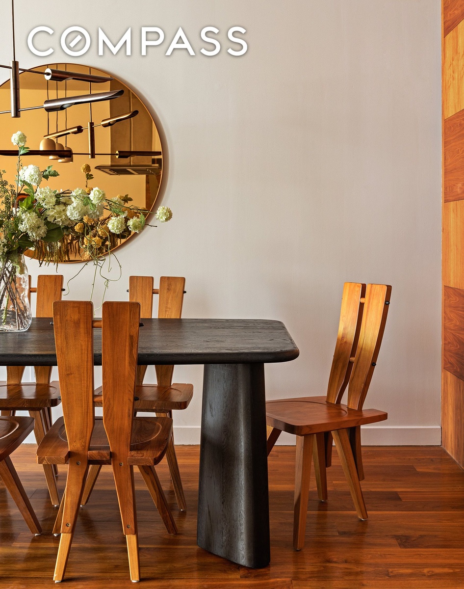 This exquisite residence boasts soaring ceilings and oversized windows, creating an airy, inviting atmosphere. Enter into the foyer that leads to an expansive living and dining area featuring a cozy wood-burning fireplace and views over Mercer Street. The open chef’s kitchen has stainless steel appliances, a vented hood over the large island, and ample cabinetry. The dining area can accommodate dinners of any size and has a huge closet / pantry with built-out shelving behind stunning wood inlay doors.