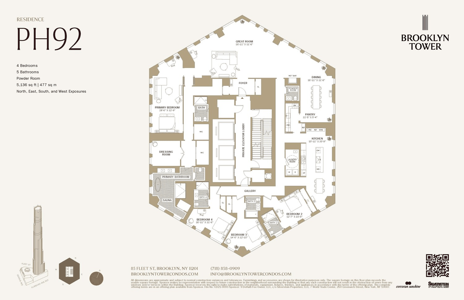 The Pinnacle of Brooklyn Living Full Floor Penthouse at Brooklyn Tower Commanding the entire 92nd floor of Brooklyn Tower the borough's only supertall skyscraper this exceptional 5, 891 square foot ...