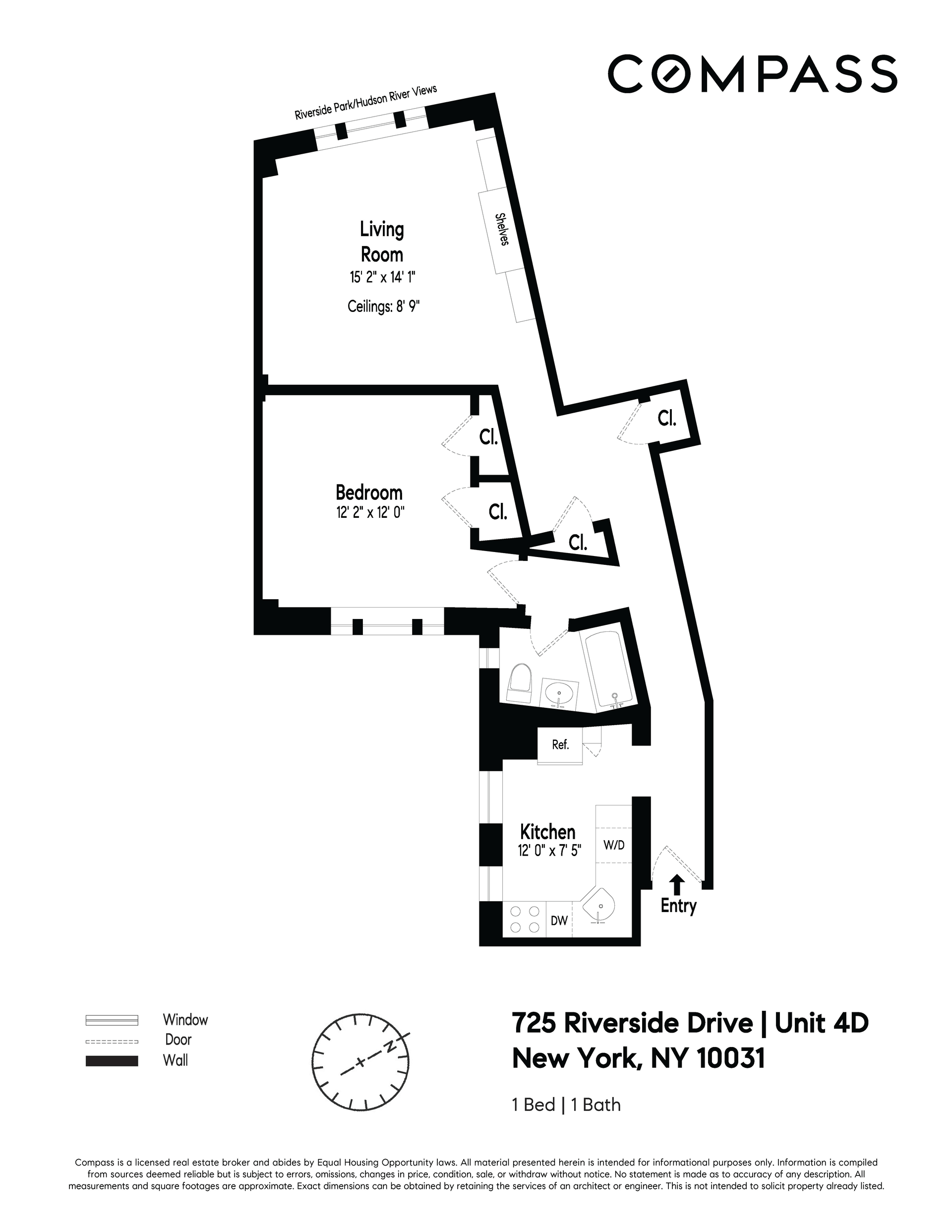 Step into this beautifully designed 825 sq. ft. condominium, situated in a beautiful prewar midrise building. This huge 1-bedroom, 1-bathroom home is renovated, in excellent move-in condition, and offers 3 spacious rooms that are a serene retreat from the city’s hustle. Upon entering, the long hallway and large foyer leads you to an open and airy living space, featuring oversized windows with Western exposure that bathe the home in natural light and sunshine. Overlooking Riverside Park, with a stunning view of the Hudson River and the New Jersey shore, in the morning you'll see reflections of the rising sun, and in the evening you will enjoy gorgeous sunsets on a daily basis.