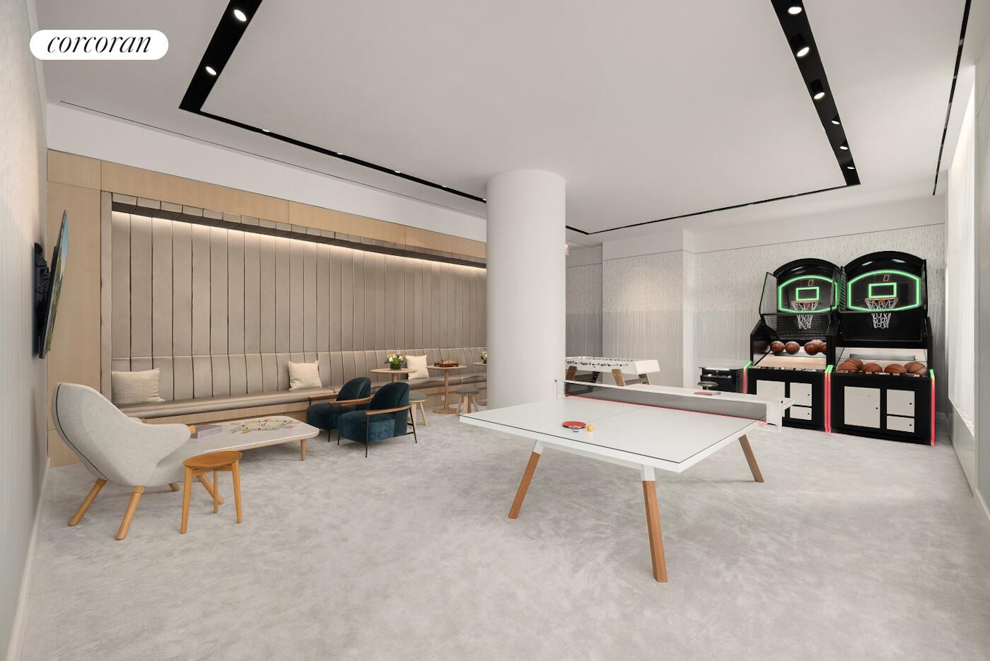 Presenting the ultimate urban lifestyle characterized by wellness and convenience, The Sutton Club has amenities on four light-filled floors. Two floors are dedicated to fitness and healthful living, including a lap pool, fully equipped gym, personal training studio, infrared saunas, and a spa and treatment room. Two additional floors offer a wealth of spaces for entertaining and recreation, including a magnificent lounge and terrace, private dining room and chef's demonstration kitchen, screening room, golf/ virtual sports room, game room, and an artful children's playroom.