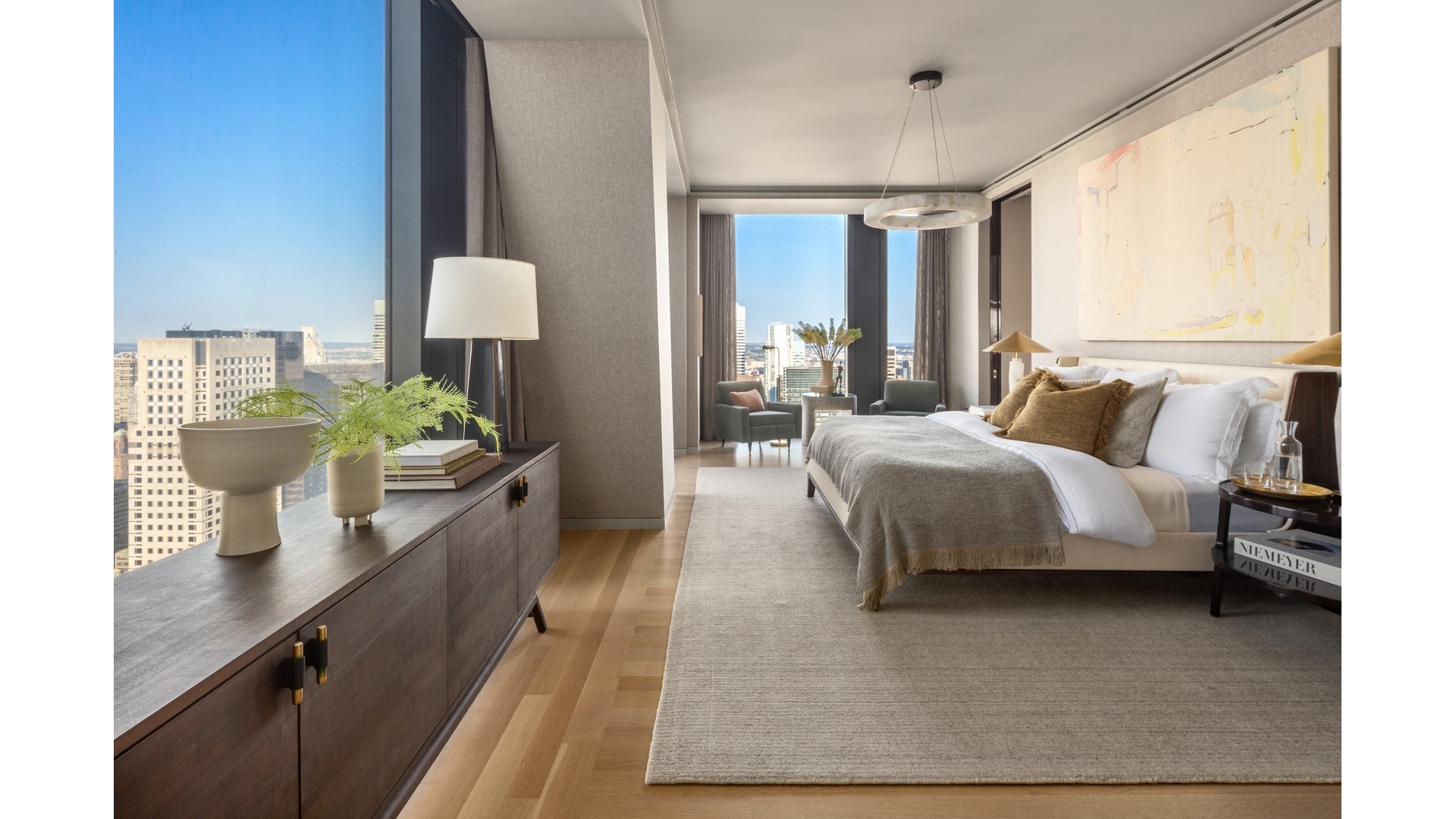 Combining superb sophistication and craftsmanship with the intimate feeling of home, Residence 52A at 53 West 53 comprises 3,910 square feet, offering four bedrooms and a windowed study, four-and-a-half bathrooms, and north- and east-facing exposures. Gracious proportions and ceilings ranging up to approximately 11 feet set the awe-inspiring stage for world-renowned designer, Thierry Despont, to craft singular spaces in the sky with many custom elements typically reserved for primarily commissioned homes. The rich yet soft palette of museum-quality finishes imbues each space with boldness and elegance.