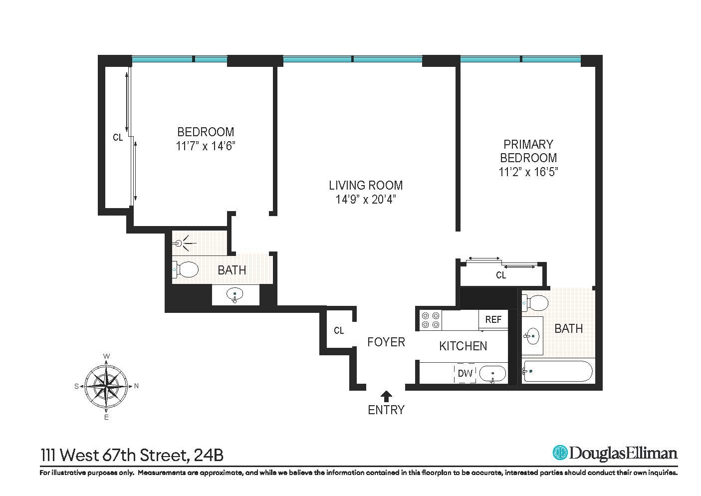 This thoughtfully designed split two-bedroom, two-bath residence offers an exceptional balance of space, light, and functionality. A gracious entry foyer with two large closets leads into an expansive west-facing living room, filled with natural light and open sky views over the city. Just off the living area is a generously sized dining alcove-ideal for both intimate dinners and entertaining-perfectly positioned across from the kitchen, which features stainless-steel appliances, ample cabinetry, and excellent workspace. A washer/dryer is permitted to be installed within the apartment, subject to condominium approval.