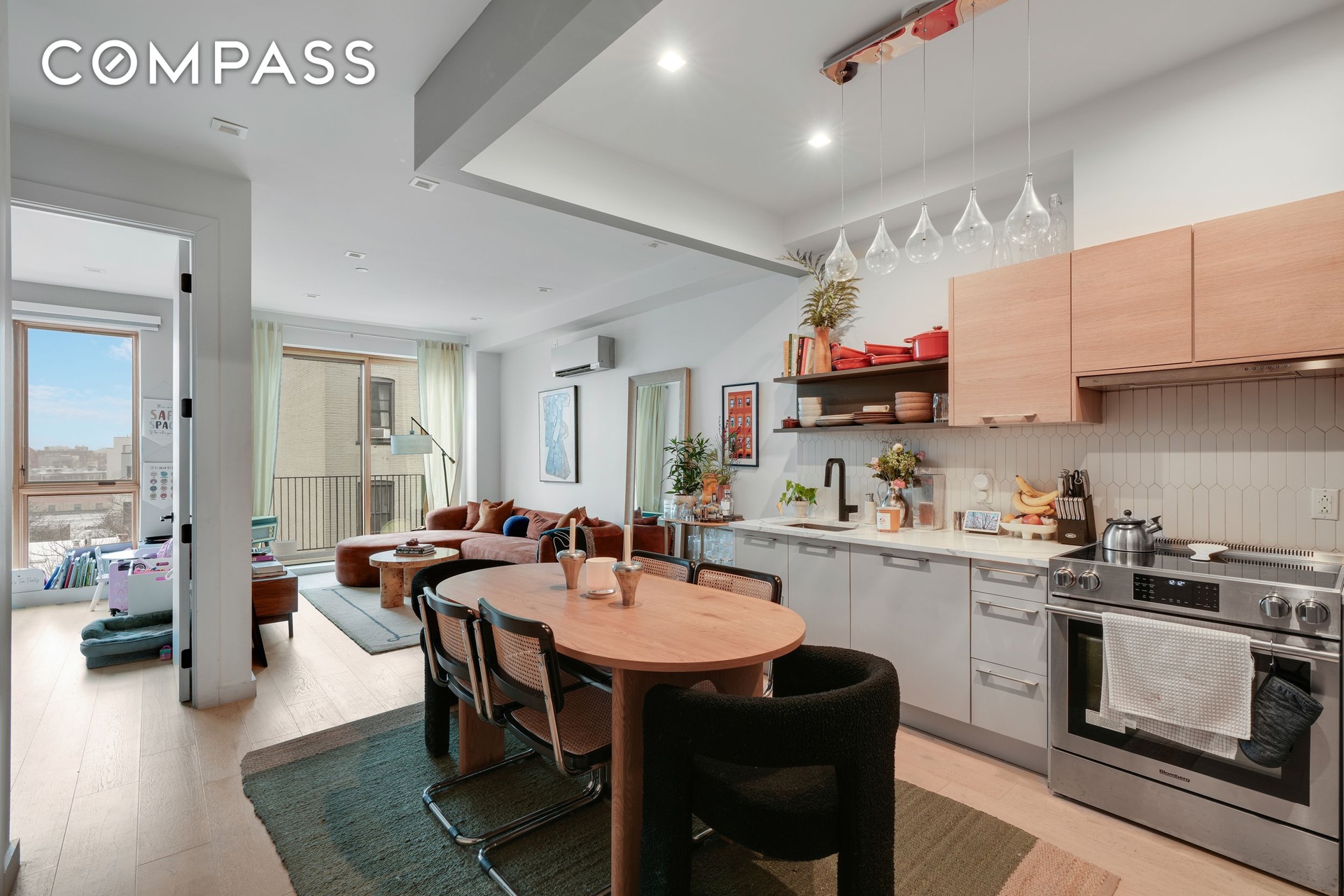 Perched atop a boutique building, this sun-filled residence boasts northeastern exposure and wide-plank Nordic White Oak flooring throughout. Designed for seamless indoor-outdoor living, the home offers three private outdoor spaces, including an expansive rooftop deck—perfect for soaking in Brooklyn sunsets or entertaining under the skyline.