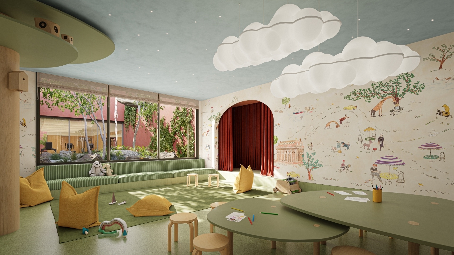 Bike Room; Garage; Wheelchair Access; Courtyard; Garden; Spa Services; Fitness Room; Exercise Studio; Pool; Sauna; Steam Room; Nursery; Lounge; Roof Deck; Cold Storage; Private Storage; WiFi; Cinema Room;