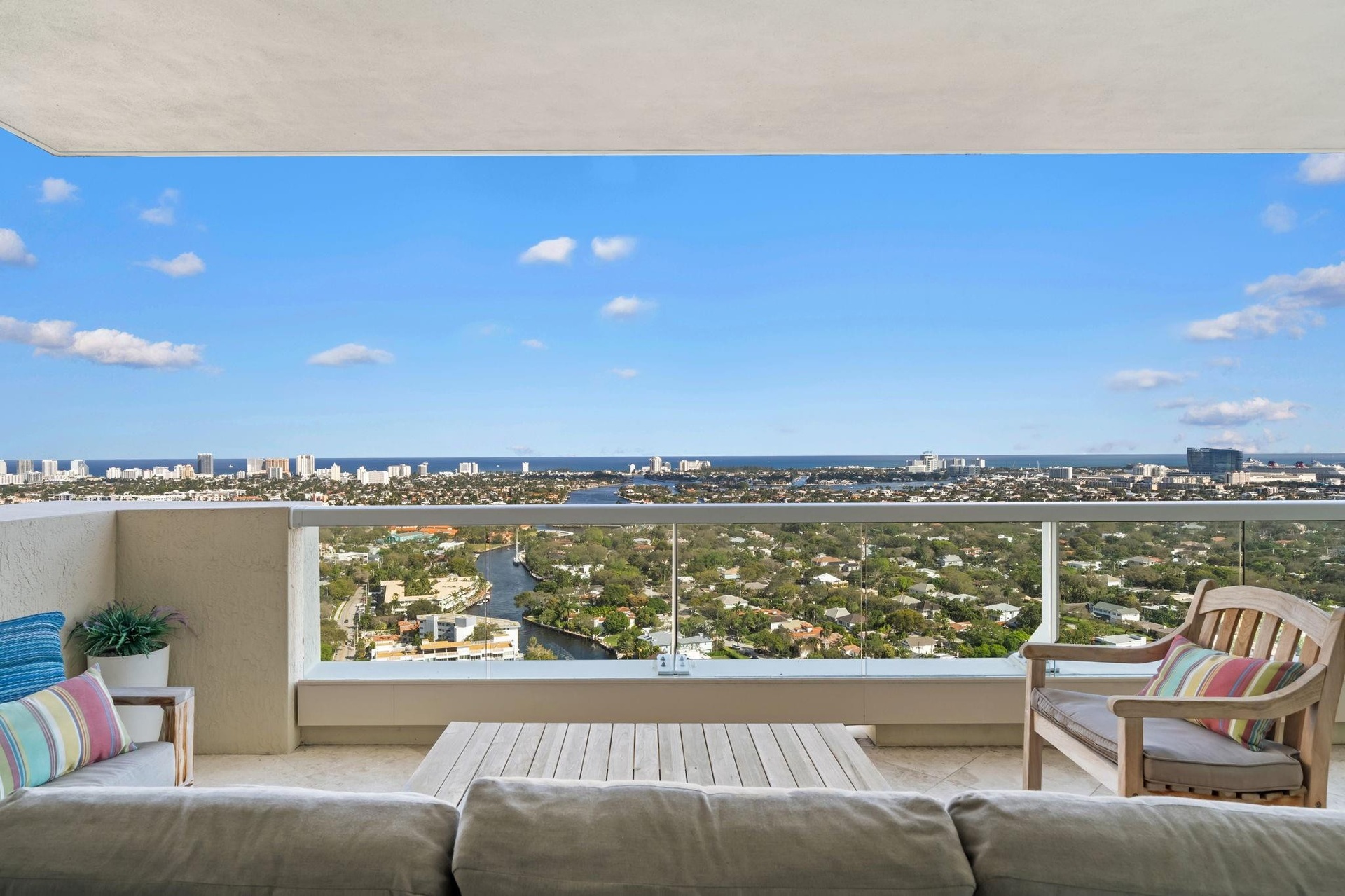 ESCAPE THE COLD ! RARELY AVAILABLE STUNNING HIGH FLOOR CHAMPAGNE MODEL WITH BREATHTAKING VIEWS ENCOMPASSING WATERWAYS OF FORT LAUDERDALE AND VIBRANT LIGHTS OF LAS OLAS WITH TWO TERRACES.
