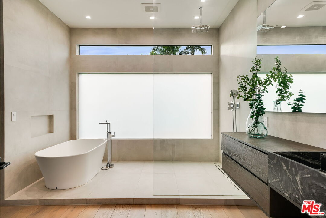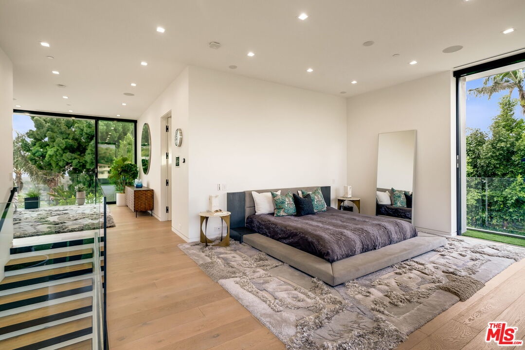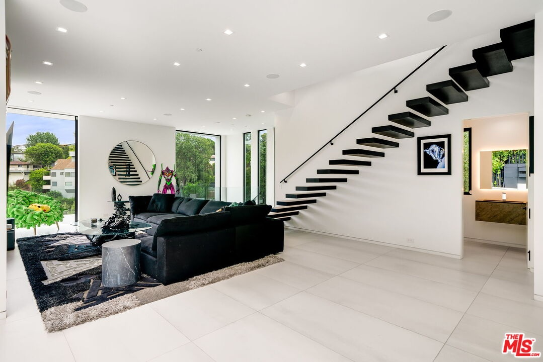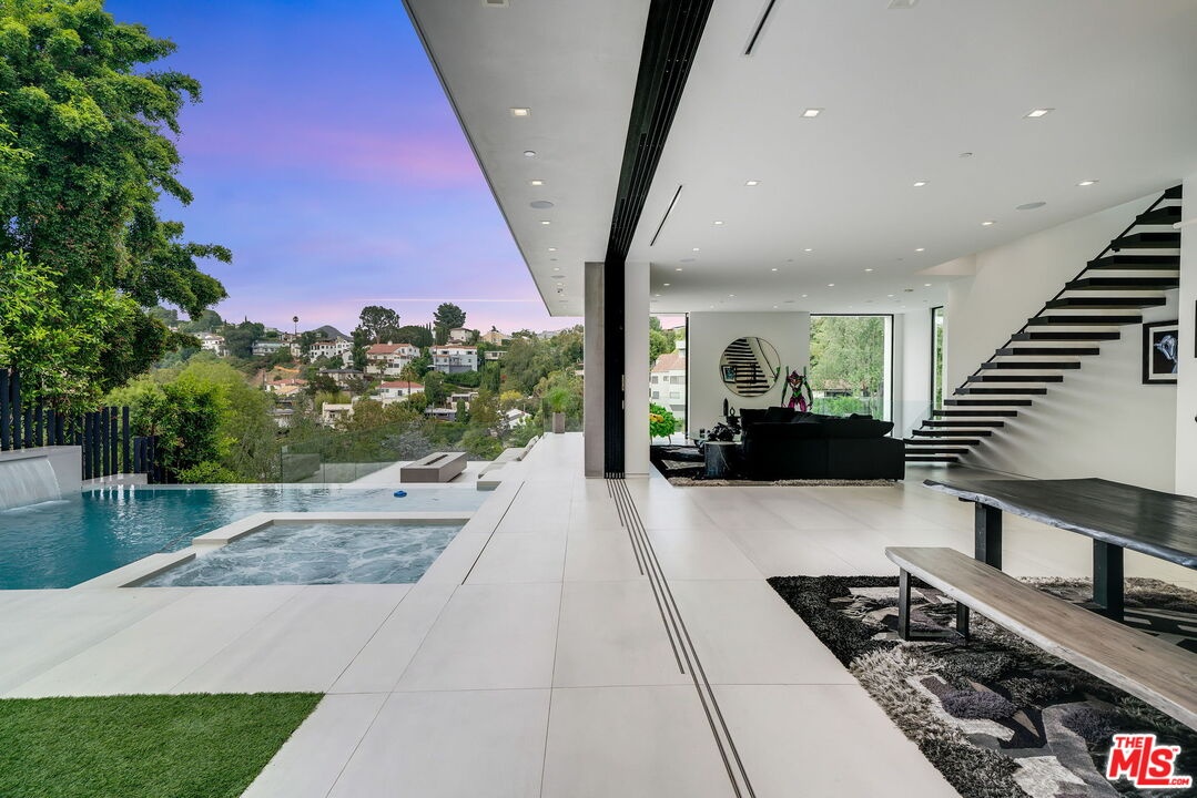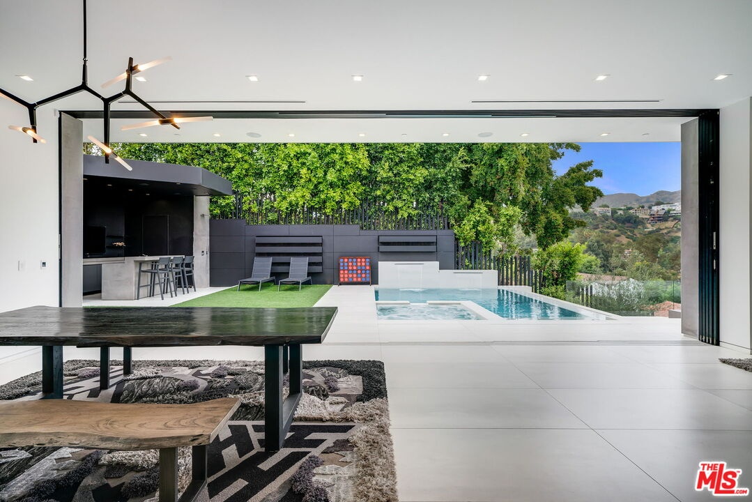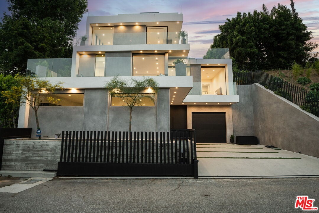 This multi-tiered modern sited hillside home embraces the Hollywood/Beachwood area with full advantage of the city lights and scene stealing views of the Hollywood Hills iconic signage. Constructed in 2019, this homes meticulously planned architectural design maximizes natural light and has features of a height grand great room, open concept living with full floor to ceiling windows, complete with access to indoor/outdoor extensive entertaining grounds. The Chef's kitchen, includes, leather countertops, Italian porcelain floors, Miele appliances, and a sizable island with suitable seating. The great room opens to a relaxing atmosphere where you can swim in the in-ground pool, spa, and dine in the outdoor kitchen with an exterior powder room for you and your guests to relax and enjoy. The private primary suite has a lounge, private deck with it's own fire pit, and night life views with dual bathrooms featuring Porcelanosa vanities, Poliform closet, a grand soak-in tub with a separate steam shower. An additional feature includes an elevator which purposely brings you to every floor of your choosing while rounding out this unique interior with features of multi level patios, decks for private gathering spaces, and repurposed speak easy outdoor living with an abundance of low maintenance turf! There is a temperature controlled wine room, 2 garages: (1) 2 car garage, and (1) 1 car garage with 2 exterior parking spaces allowing for a total of 5 parking spaces on property. Completing the amenities is a Control 4 system which allows you to personally control the home with complete ease. If you want more, there is more! There is a roof top deck with 270 degree views, outdoor fire pit, complete with a kitchen allowing for an abundance of Hollywood Sunsets! This is the best the Hollywood Hills has to offer and you must preview to witness how you can make this your own!