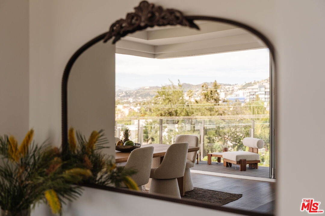 Set high within the exclusive Four Seasons Private Residences, this exceptional quarter-floor northeast corner home captures sweeping panoramic views from the Hollywood Hills across West Hollywood and onward to the Downtown skyline. Towering above its neighbors, walls of glass surround the residence and open to an expansive wraparound balcony, creating a seamless indoor-outdoor living experience and filling the interiors with natural light throughout the day. Private dual-elevators open directly into the unit's foyer, offering a rare sense of arrival and privacy. The residence offers two en-suite bedrooms with walk-in closets, plus a den currently used as a third bedroom, allowing for flexible living, work, or guest accommodations. Positioned beside the iconic Four Seasons Hotel, the Private Residences rise as a boutique collection of just fifty-nine homes within a striking 13-story California Modern building. Interiors, curated by Martyn Lawrence Bullard, blend warmth and sophistication, while chef-caliber kitchens outfitted with Gaggenau appliances and spa-inspired baths reflect a commitment to both design and livability. Life here is defined by a service-driven lifestyle that extends well beyond the walls of the residence. Residents enjoy access to a full suite of five-star amenities, including a private restaurant with 24-hour in-residence dining, concierge and valet, and dedicated property management capable of preparing the home for arrival, from a fully stocked kitchen or private jet on return. Additional amenities include a saltwater pool with cabanas, a 19-seat IMAX private theatre and lounge, a Harley Pasternak-designed fitness center, residents' club room, and available housekeeping services. Set at the intersection of West Hollywood and Beverly Hills, moments from some of Los Angeles' most celebrated dining, shopping, and nightlife, this residence offers a rare balance of architectural presence, elevated design, five-star service, and absolute discretion: true Four Seasons living.