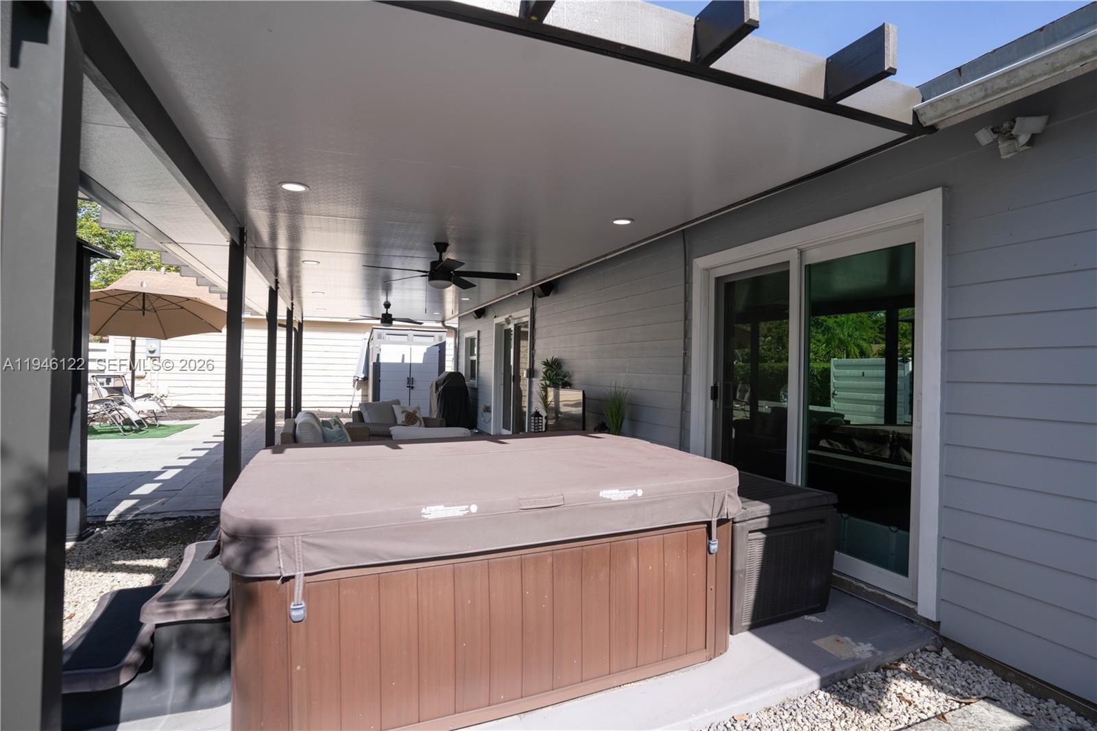 Welcome to this beautifully renovated 3-bedroom, 2-bathroom home located in the highly desirable Country Walk community. Situated on a quiet cul-de-sac, this property offers a premium setting with a backyard that opens directly to a community green space ideal for outdoor enjoyment and family fun. The home features impact-resistant windows and doors throughout. The updated kitchen is equipped with shaker-style wood cabinetry, stainless steel appliances, and granite countertops. Both bathrooms have been tastefully renovated with modern finishes. The covered patio provides an excellent space for entertaining and features a brand-new aluminum roof, LED lighting, and ceiling fans. Fiber cement boards have recently been replaced and include a 30-year warranty. Residents of Country Walk enjoy a wide array of amenities, including swimming pools, tennis, basketball, and pickleball courts, a playground, clubhouse, and a scenic lakefront walking trail.