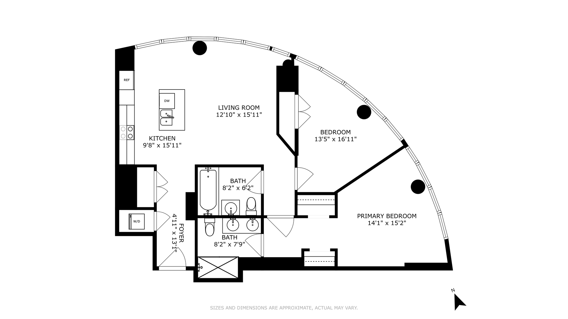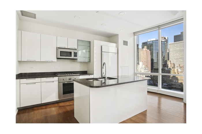 Hurry & move-into this unique, spacious and sun filled 2 bedroom, 2 bathrooms which features ample closet/storage space, 12 FT ceilings, huge double height wall of curved windows with Northern exposure in every room, open Chef's kitchen with stainless steel appliances such as Sub-Zero refrigerator/freezer, Viking gas cooktop and oven, Viking microwave, Miele dishwasher, custom made cabinetry from Poggenpohl, granite countertops, white oak hardwood floors throughout and let's not forget the Miele washer & dryer!