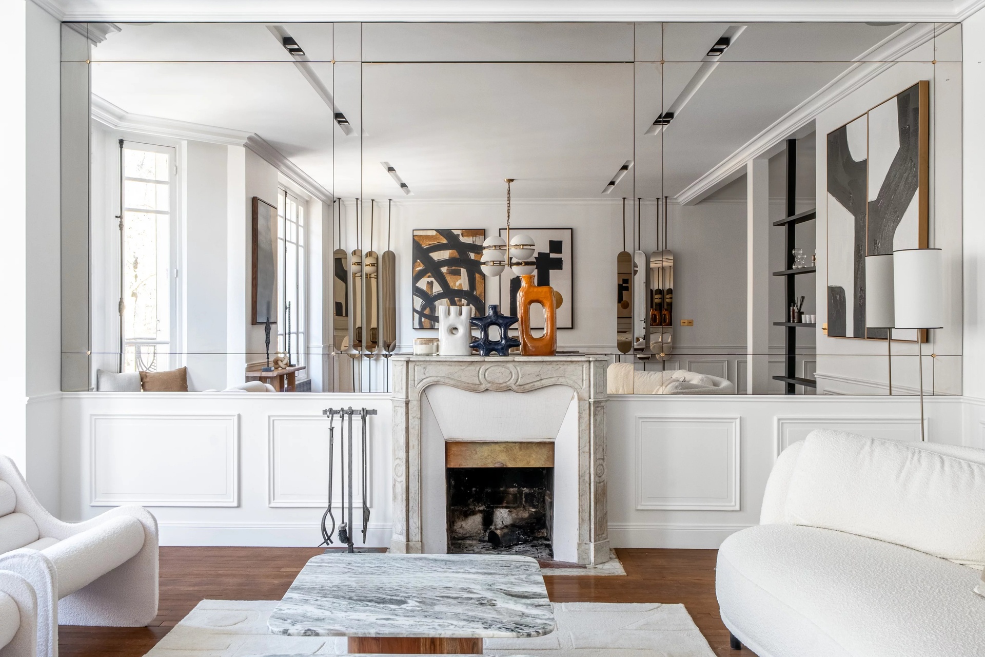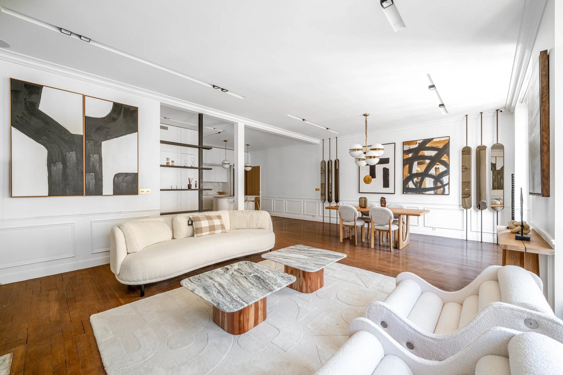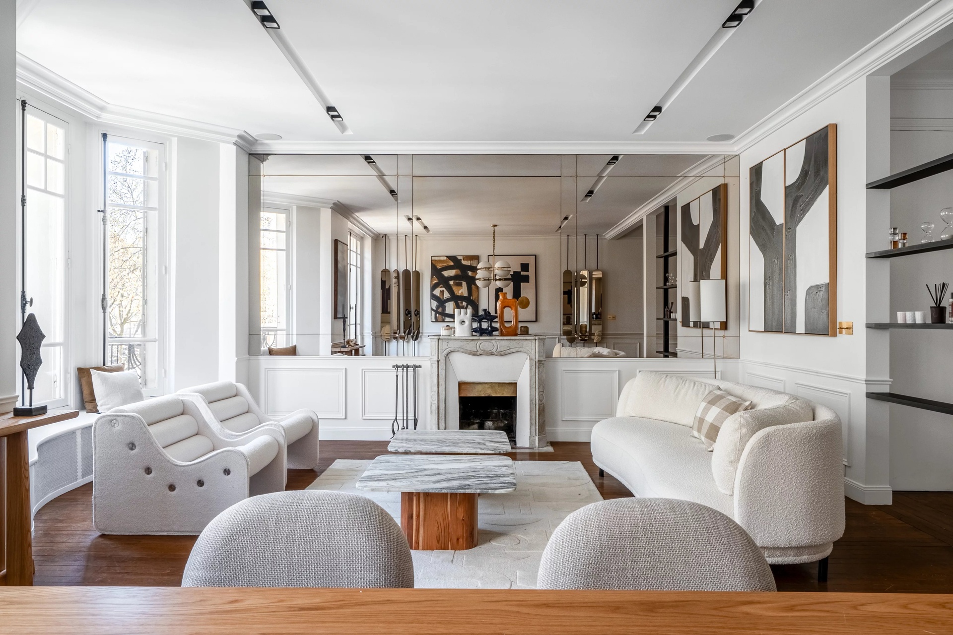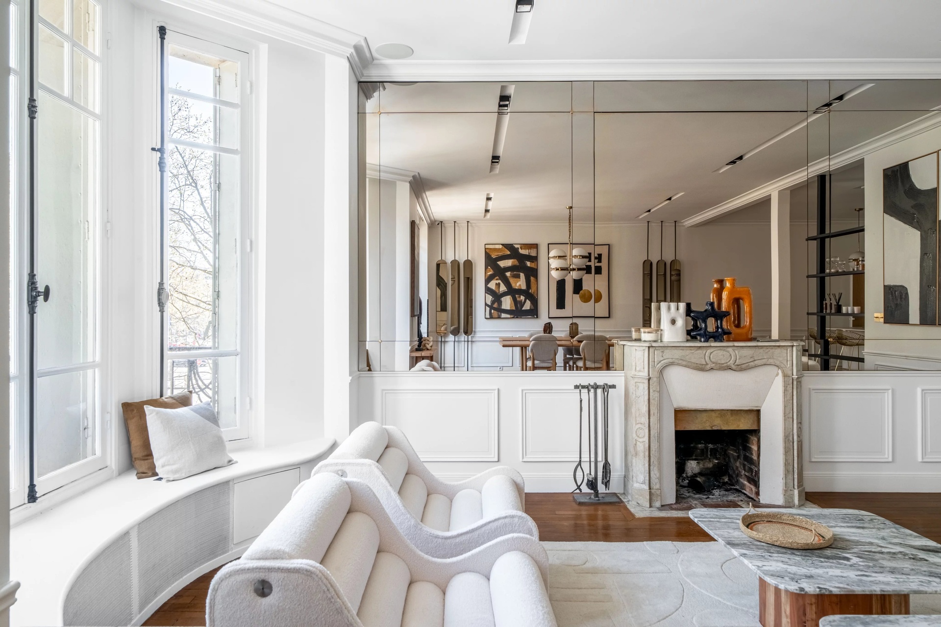 Located in the prestigious Gros-Caillou district of Paris 7th, this splendid 127 m2 apartment offers the perfect blend of classic Parisian charm and contemporary refinement. The spacious living and dining area features wide windows that bathe the interiors in natural light, complimented by elegant wood floors, chic modern décor, and a stunning decorative fireplace as a centerpiece.