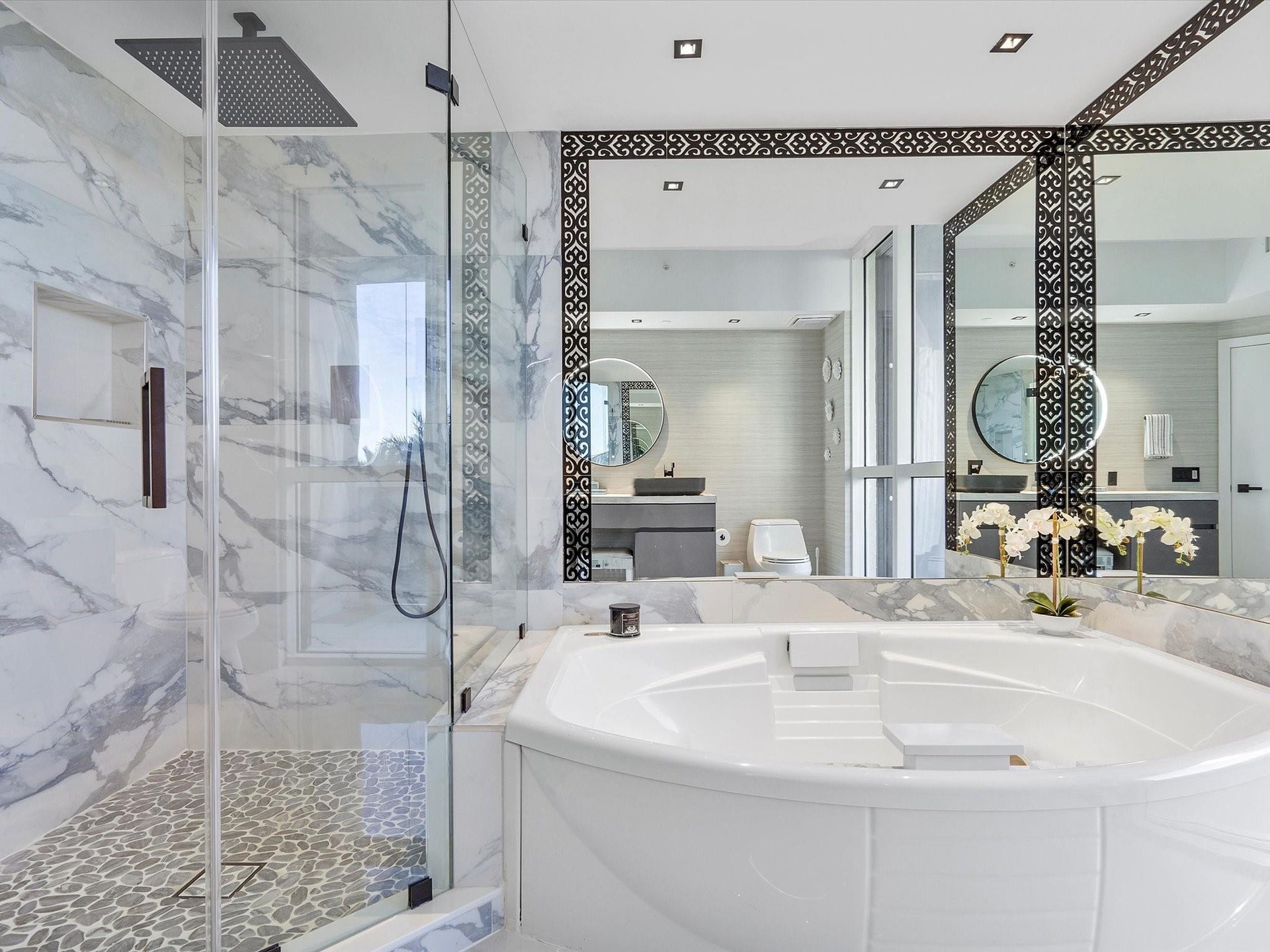 Renovated and furnished at L'Hermitage. Large, open floor plan with 3 bedrooms, 3.5 bathrooms, and private elevators. New flooring throughout, New Bathrooms. Enjoy sensational night views and a glimpse of the ocean from one of two large balconies/access to balconies from every room! L'Hermitage, one of South Florida’s premier resort-style luxury condominiums, offers over 10 acres of Oceanfront/Beachfront property with tennis, fitness, fenced complex, attended beach, pool deck restaurant with full bar, spas, saunas, steam rooms, massage rooms, amazing walkability & pet friendly. Minutes from Las Olas Boulevard, downtown, the airport and seaport.Driving Directions: East of A1A at Oakland Park Blvd; gated community. Valet parking available.