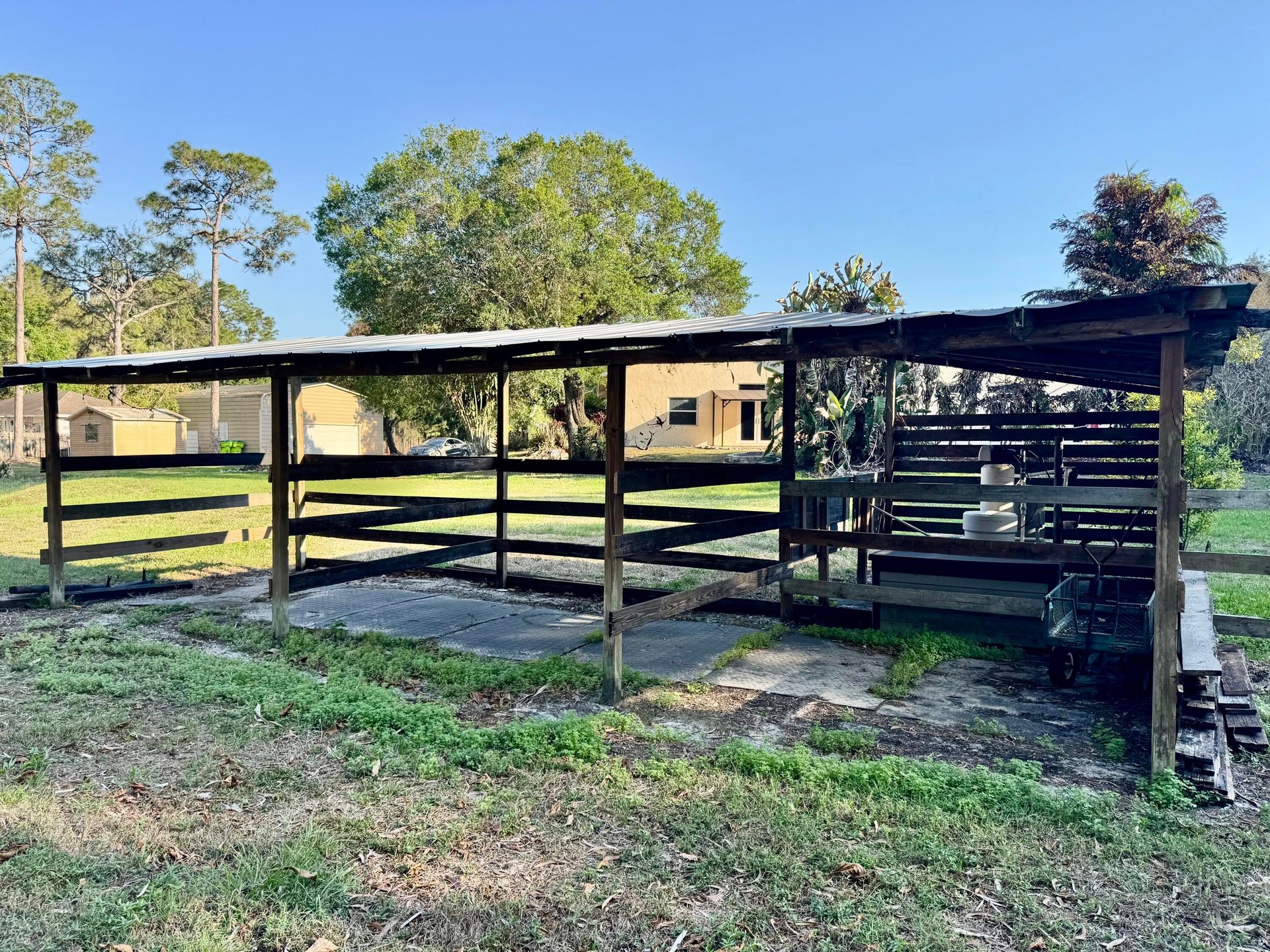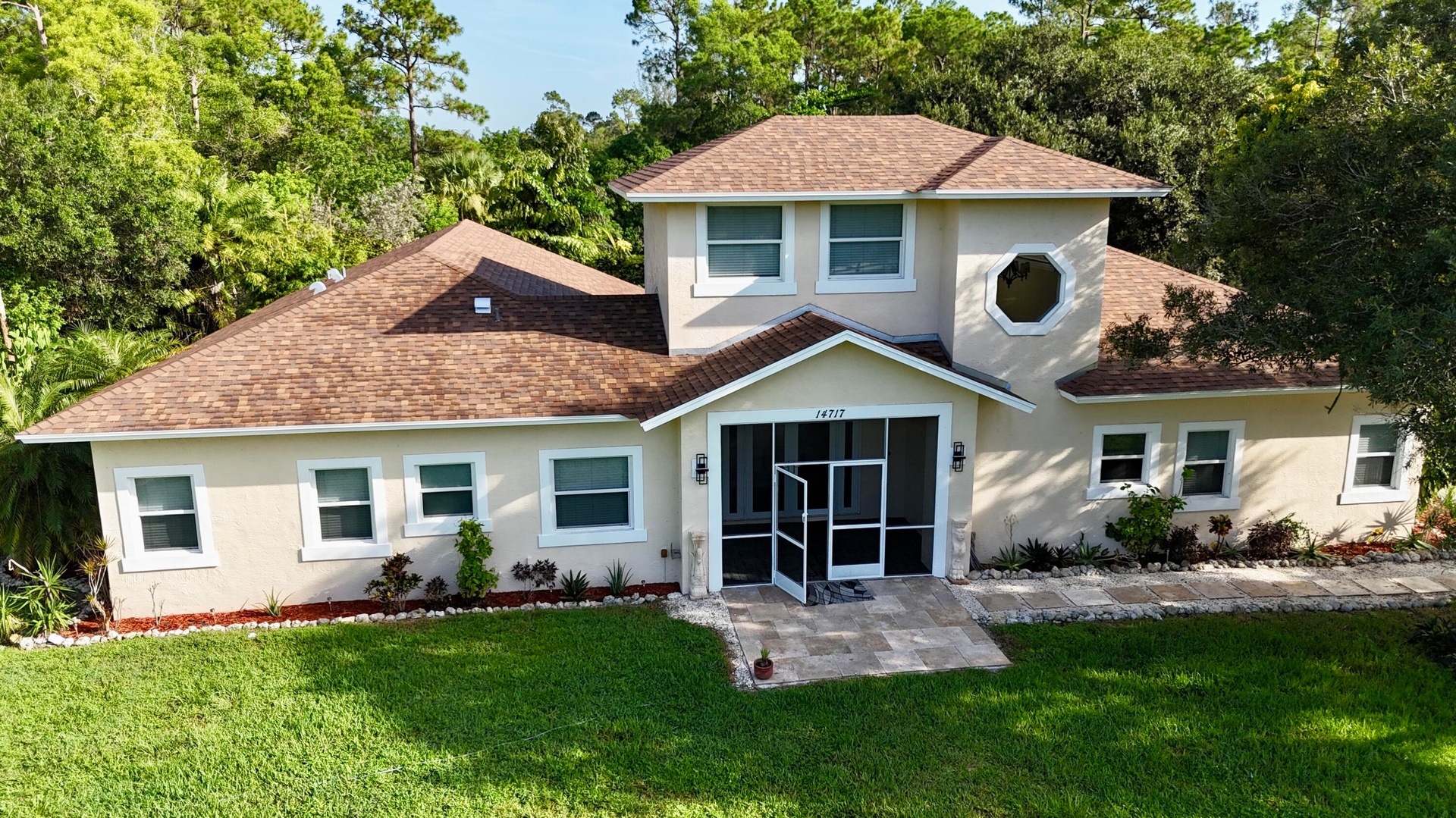 Situated on a private 1.84-acre gated lot, this spacious 4-bedroom + loft/optional 5th bedroom, 3.5-bath home offers the perfect blend of functionality, flexibility, and outdoor living. Inside, the home features an open and expansive layout with multiple living areas, a dedicated entertainment space, and a large kitchen that flows seamlessly into the main living area, ideal for both everyday living and hosting. The additional loft provides flexibility for a home office, guest space, or 5th bedroom. Step outside to a screened-in pool and patio overlooking the property's private pond and newly updated dock (2025), creating a peaceful and private setting. The property is equipped for a variety of lifestyles, featuring a large detached garage, multiple storage buildings, and three horse stalls offering space for equipment, hobbies, or recreational use. Recent upgrades include a new roof (2025), hurricane-impact windows and doors on the first floor (2025), two tankless gas water heaters (2025 & 2020), an updated HVAC system, and a water softener system. This is a rare opportunity to own a gated acreage property with usable land, modern upgrades, and versatile living space — all in one.