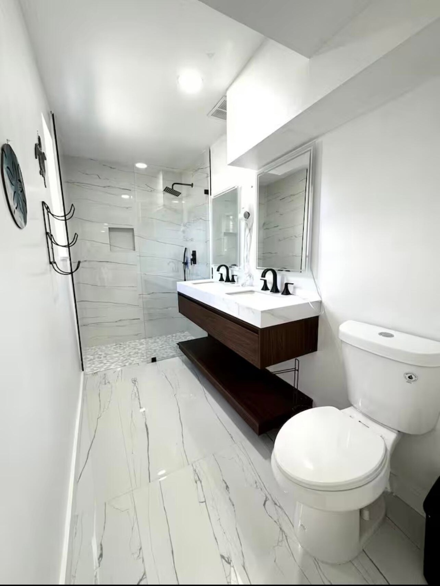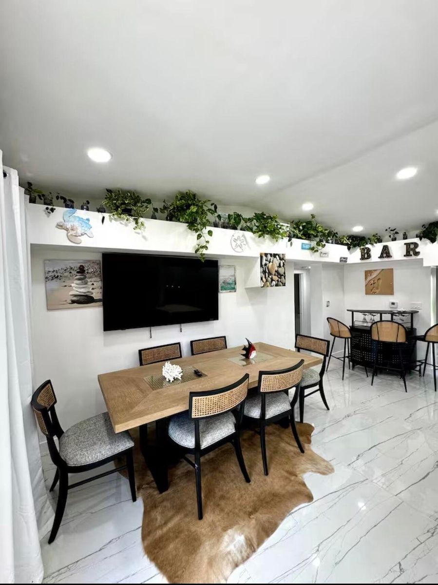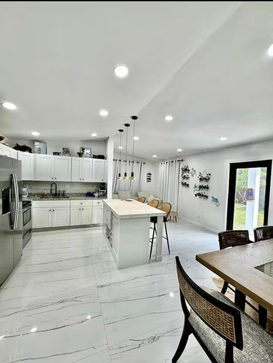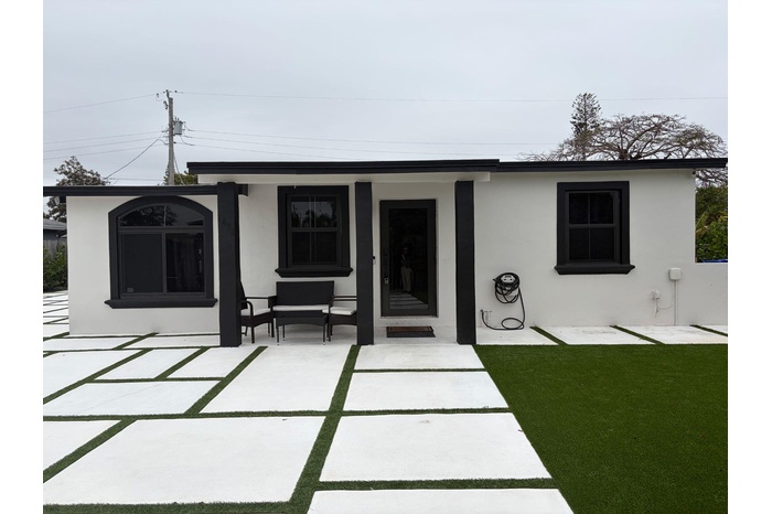 Fully furnished or unfurnished, 3BD/2BA luxury retreat in Pompano Beach, now available! Renovated top to bottom with gorgeous marble tile, recessed lighting, and sleek black trim on windows, doors, and fixtures. Have a true chef's kitchen with ample storage in cabinetry, built-ins, and overhead, an island, stainless steel appliances, and mini bar. Master suite features a king mattress set, sitting nook, a sliding closet & seamless ensuite access. The two additional bedrooms each offer queen comfort. The hotel-worthy bathrooms include illuminated dual vanities, double sinks, and walk-in showers surrounded by lavish architectural design. Outside, a raised swim spa, designer paver terrace, & patio set await. Fenced lot and W/D available. Minutes from the beach. Schedule your showing today!