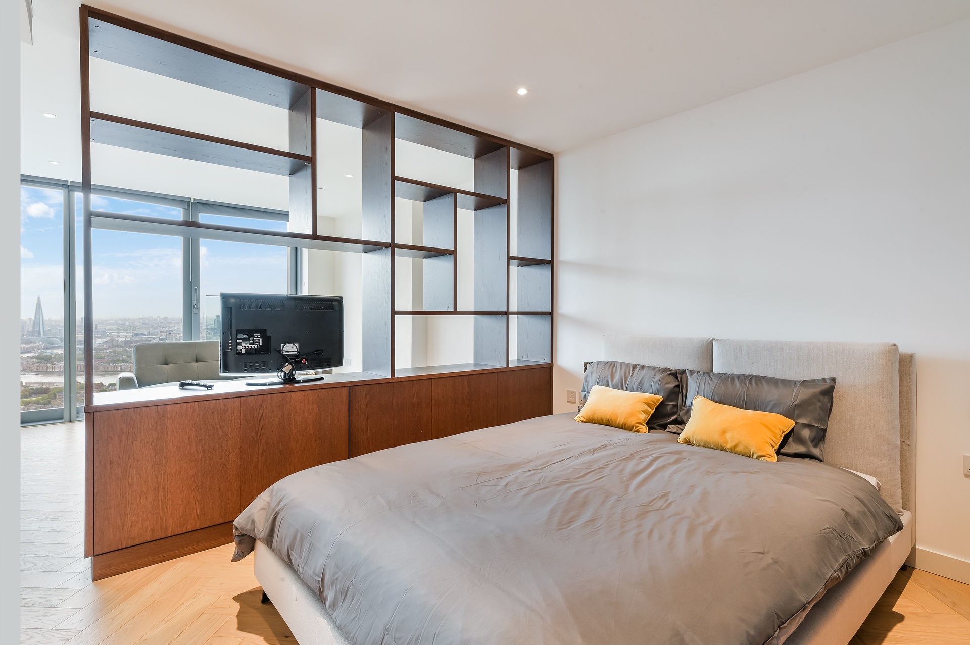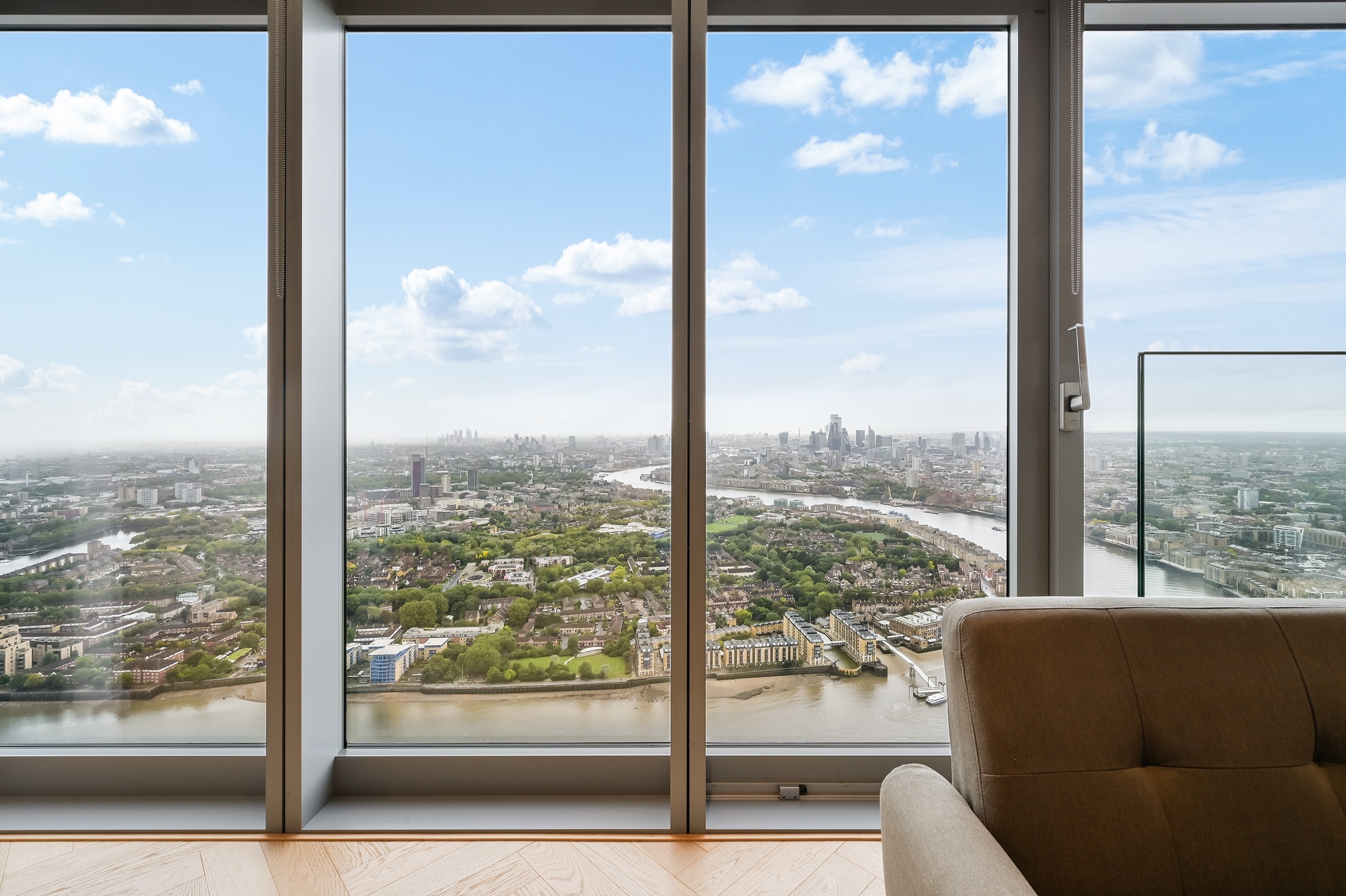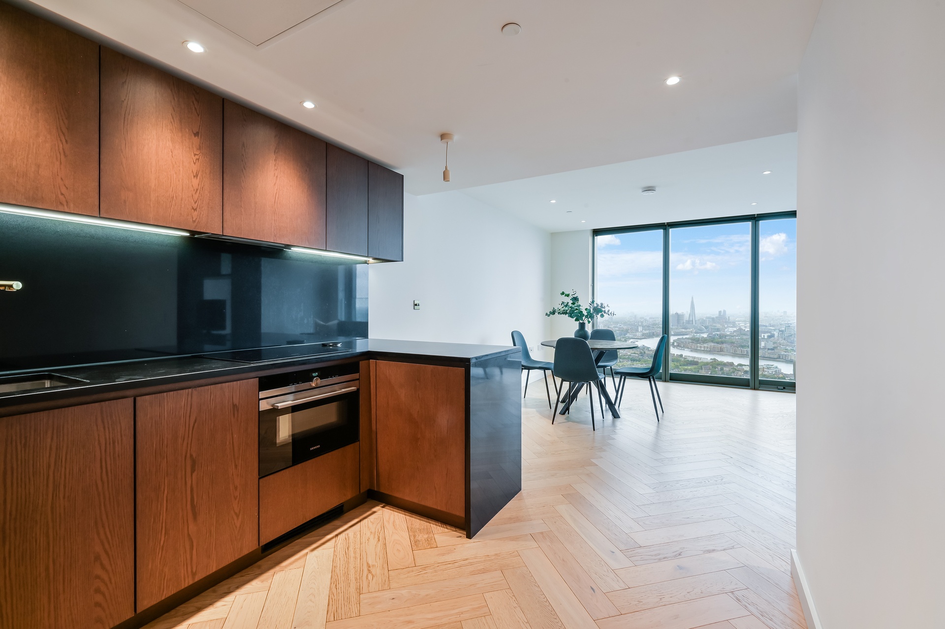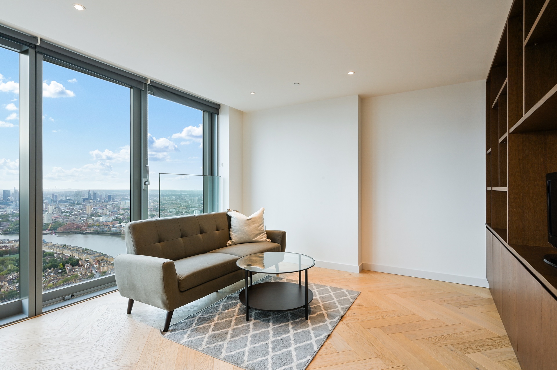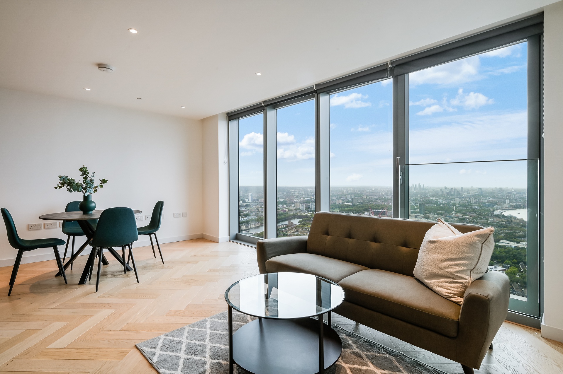 Positioned on the 64th floor, this exceptional studio residence offers truly breath-taking panoramic views across the River Thames and South West London, delivering a rare sense of elevation and skyline living.