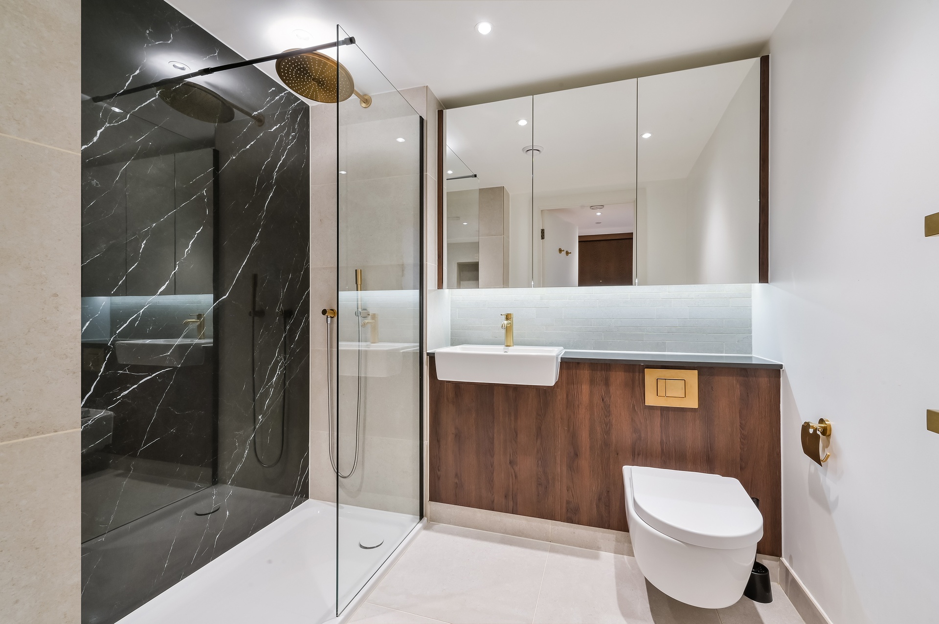 The sleeping area benefits from fitted wardrobes, while the contemporary bathroom is finished to a high specification, featuring a full-size bathtub with overhead shower.