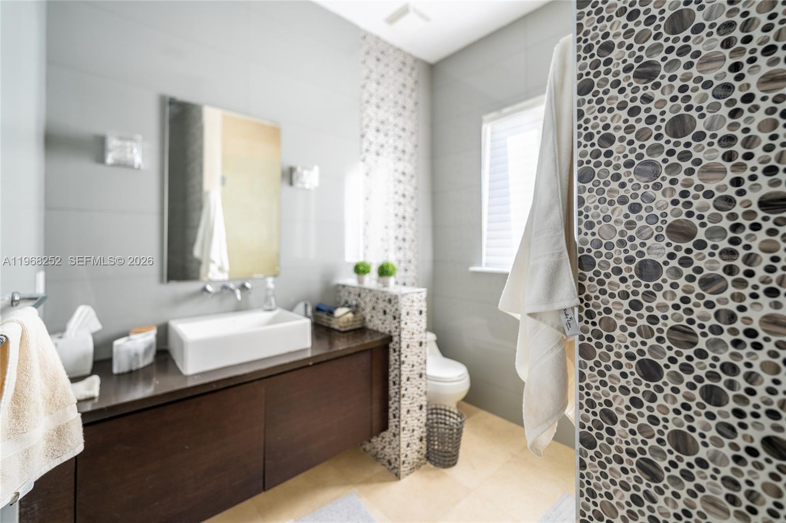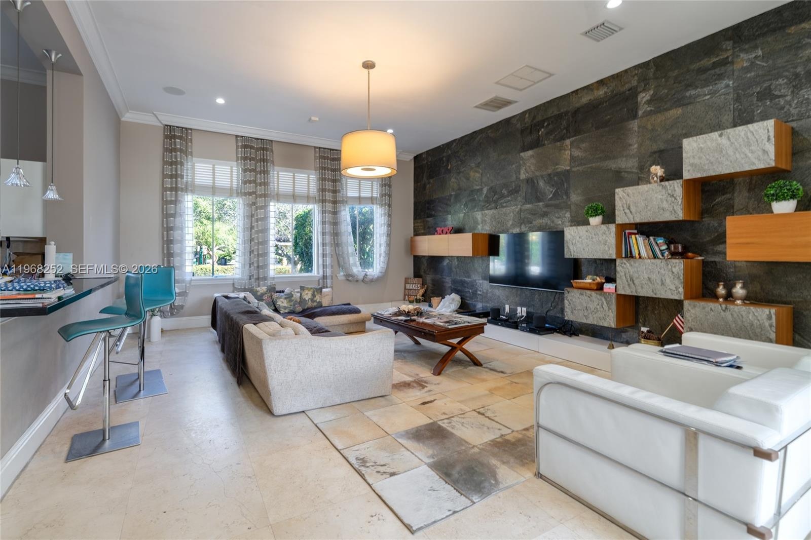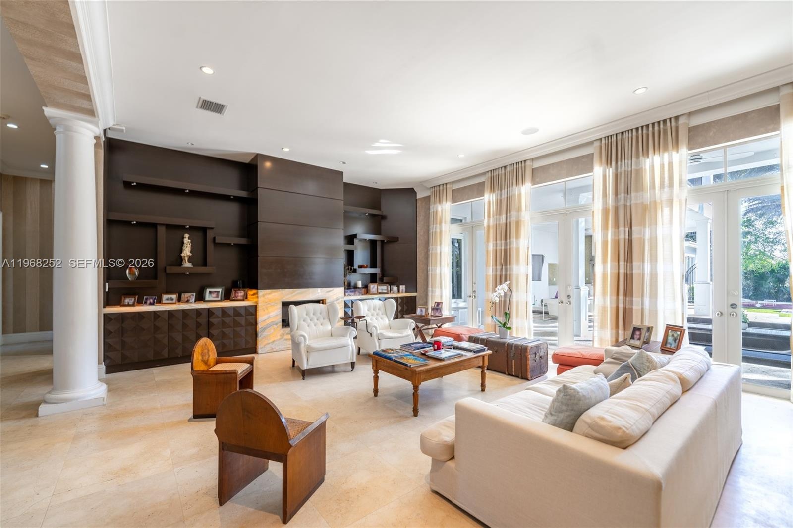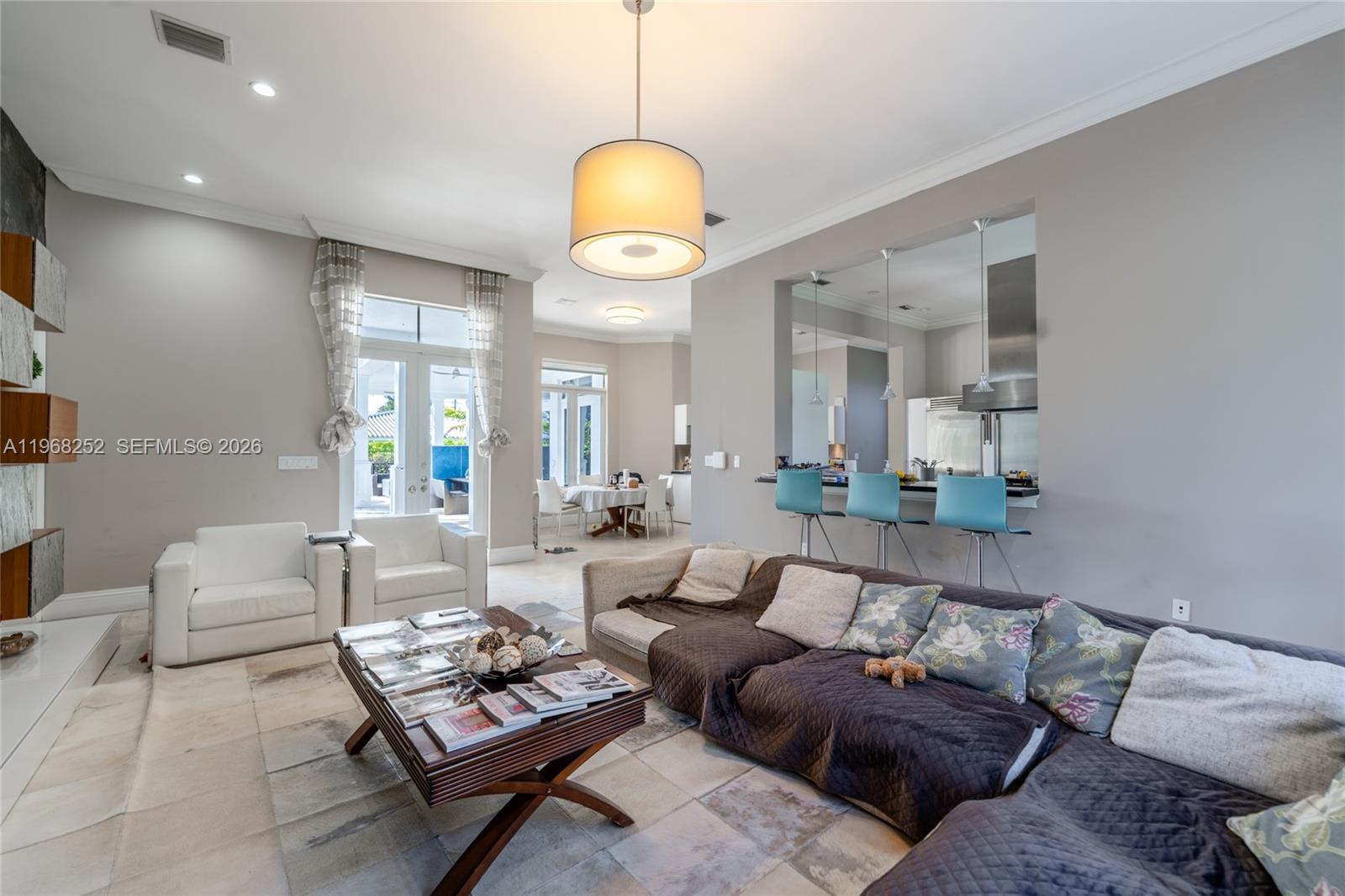 Step outside to your private outdoor oasis, complete with a bar, summer kitchen, living area, lush garden, and sparkling swimming pool — ideal for entertaining or relaxing in style. Professionally decorated with designer finishes, this chic and elegant gated home combines beauty and functionality.