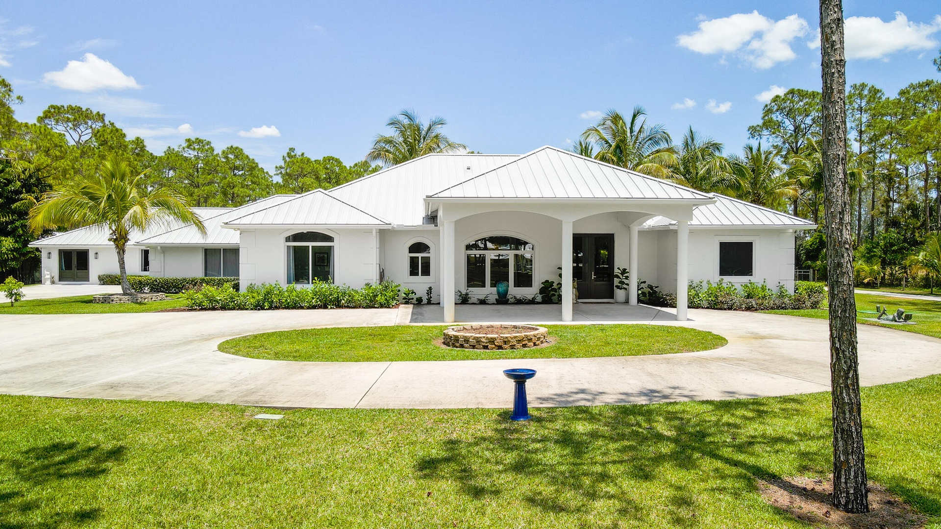 A masterclass in modern elegance and equestrian living, this completely renovated Caloosa estate blends minimalist design with exceptional function across 5 private, fully fenced, and irrigated acres. Offering 5 bedrooms, 5 bathrooms, and nearly 5,000 square feet of refined living space, every inch of this residence has been curated for effortless luxury and timeless sophistication. The residence features smooth walls and ceilings, impact glass throughout, and an abundance of natural light that highlights its modern, clean aesthetic. The designer kitchen is the heart of the home, showcasing elegant quartzite counters and backsplash, a large island, and Sub Zero refrigerator. A major highlight is the two bedroom, two bath guest house - a complete private residence with its own kitchen. The guest house also has a washer/dryer, all with the same high end finishes, and cabana bath. For equestrian enthusiasts, the property is truly exceptional. It includes two barns with six stalls, a riding arena, and manicured paddocks with a full drainage system, designed for optimal care and convenience. The barn is equipped with a fly control system, washer and dryer in the tack room, and thoughtfully planned ventilation and storage. A covered truck and trailer parking area, air-conditioned workshop building, and separate gated entry make this property as functional as it is beautiful. Recent updates include two new A/C units, new insulation and ducts throughout the main house and garage, a new drain field, water filtration system, and whole-property irrigation. New insulation and ducts throughout the main home and garage. This is acreage living without compromise, where contemporary design meets serene equestrian lifestyle. Located within the prestigious Caloosa community, residents enjoy access to over 30 miles of interior riding trails and a 32-acre horse park featuring a dressage arena, jump course, and cross-country area. Additional amenities include tennis and pickleball courts, a children's playground, basketball courts, and a private park with meeting facilities, all exclusive to Caloosa residents and their guests. Caloosa is a one-of-a-kind equestrian enclave with approximately 350 five-acre home sites, ideally positioned just 15 minutes from the Florida Turnpike, I-95, and The Gardens Mall, and 25 minutes from Downtown West Palm Beach and Palm Beach International Airport. It's a perfect blend of privacy, prestige, and accessibility,making it one of Palm Beach County's most coveted equestrian communities. With its rare combination of sleek modern design, world-class equestrian amenities, and thoughtful upgrades throughout, 14819 Broken Arrow Place offers an unparalleled opportunity to experience the best of Palm Beach Gardens' luxury acreage living. THIS IS THE NEW WELLINGTON - COME & ENJOY THE SPACE.