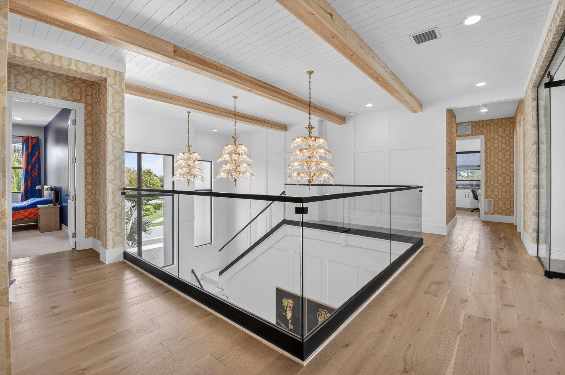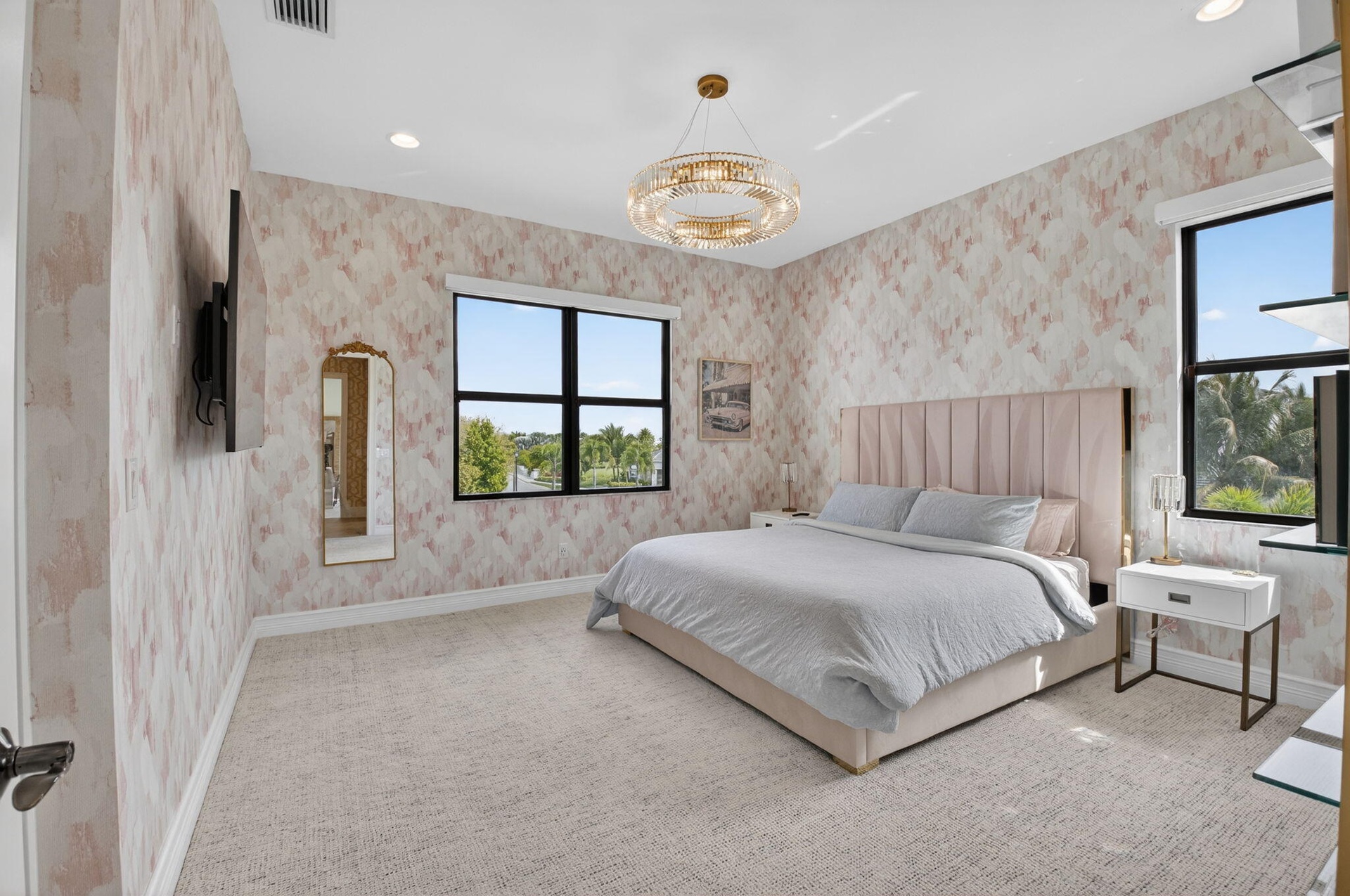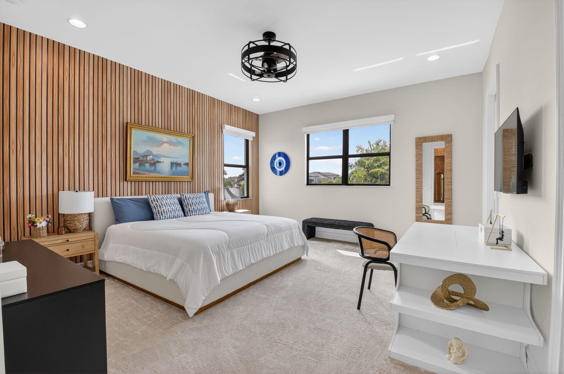 This stunning Riverside model with a coastal transitional elevation showcases exceptional design, thoughtful upgrades, & a beautifully curated indoor-outdoor lifestyle. Original enhancements include a resort-style outdoor oasis, creating a private retreat ideal for entertaining & relaxation. The backyard features a fully equipped outdoor kitchen, artificial turf, decorative fountains, & lush professional landscaping, along with a custom pergola with adjustable louvers offering both sun & shade throughout the day. Additionally this home has been significantly upgraded with extensive architectural & designer features throughout: a striking glass staircase, custom wall moldings in the foyer & staircase, & an illuminated coffered ceiling. Furnishing is negotiable. Exclusions that would apply are white couch in family room and all beds in the upstairs bedrooms.