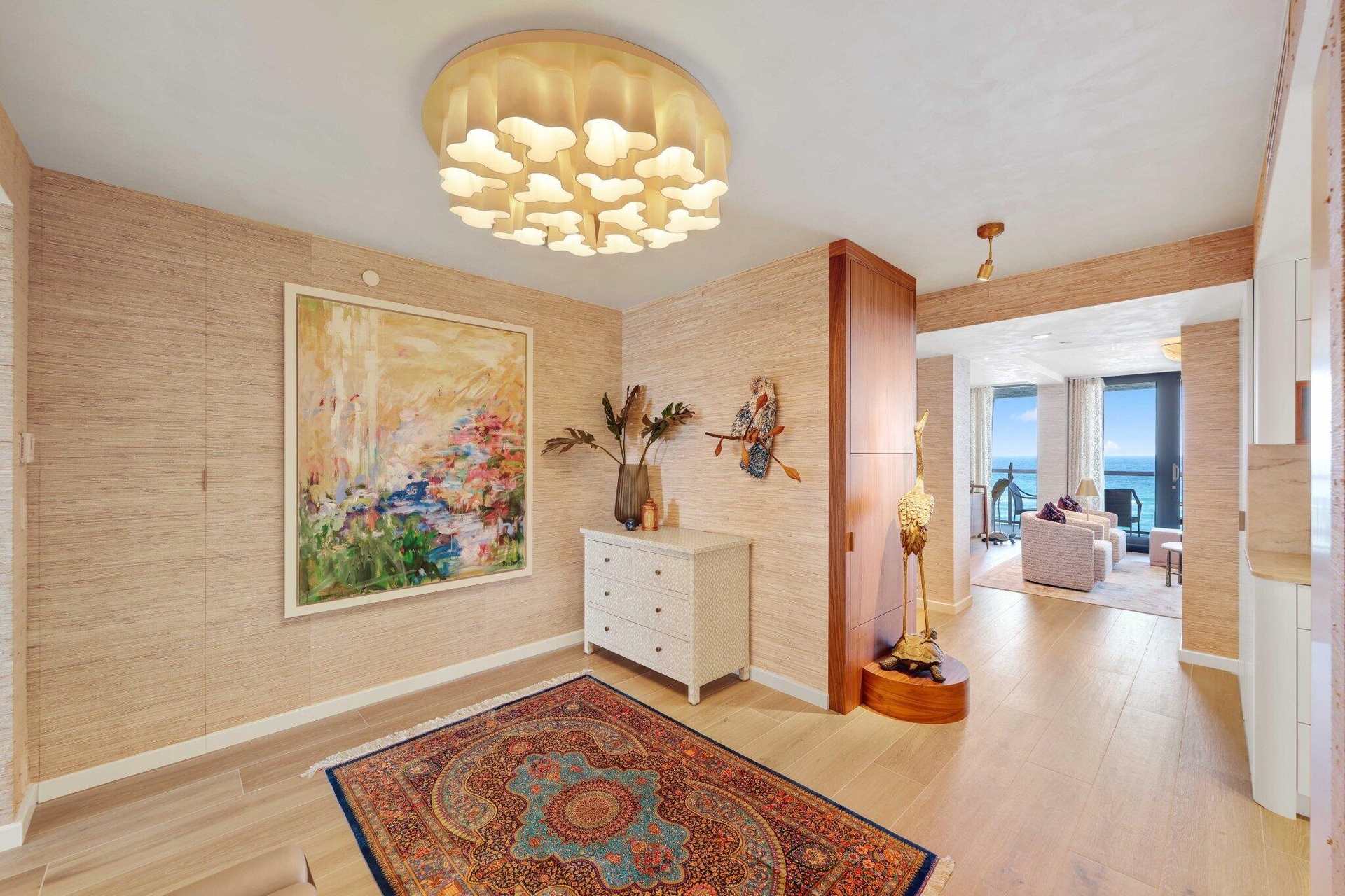 Experience a level of oceanfront living that is truly without comparison. Residence 705 at Villa Magna has been completely reimagined and rebuilt, offering a one-of-a-kind layout that seamlessly blends elevated design, exceptional functionality, and timeless luxury. From the moment you enter, the home reveals its defining feature—breathtaking, uninterrupted views of the Atlantic, thoughtfully framed to create the sensation of being at sea. Inspired by the elegance of a luxury yacht, the main living space was designed so that when seated, the water is all you see, delivering an immersive and tranquil experience unlike anything else on the market. The floor plan has been masterfully reconfigured to optimize both flow and livability. The primary suite is positioned directly on the ocean, offering true flexibility—including a third bedroom designed as a sunset room, perfectly oriented to capture the beauty of Florida's evening skies. Every detail of this residence has been carefully curated. Warm, neutral tones enhance the ocean-facing living areas, allowing the natural beauty of the water to take center stage, while the Intracoastal side introduces subtle coastal hues, creating a cohesive and sophisticated design throughout. The custom kitchen is a work of art, featuring cabinetry designed to mirror the graceful curves of the building's exterior, finished in a refined off-white palette. The primary bath and closets evoke the finest luxury hotels, showcasing exceptional craftsmanship, premium materials, and an uncompromising attention to detail. Villa Magna itself has recently completed an extensive building-wide restoration, further elevating the ownership experience. With concrete restoration, a new roof, impact glass railings, renovated balconies and pool deck, redesigned lobby and common areas, updated systems, and enhanced amenities throughout, the building now offers peace of mind alongside refined coastal living. Perfectly positioned between Boca Raton and Delray Beach, residents enjoy effortless access to both, while living directly on the sand in one of Highland Beach's most desirable full-service buildings. Unit 705 is more than a residence—it is a statement of design, lifestyle, and intention. A rare opportunity for the most discerning buyer to own a true piece of oceanfront art.