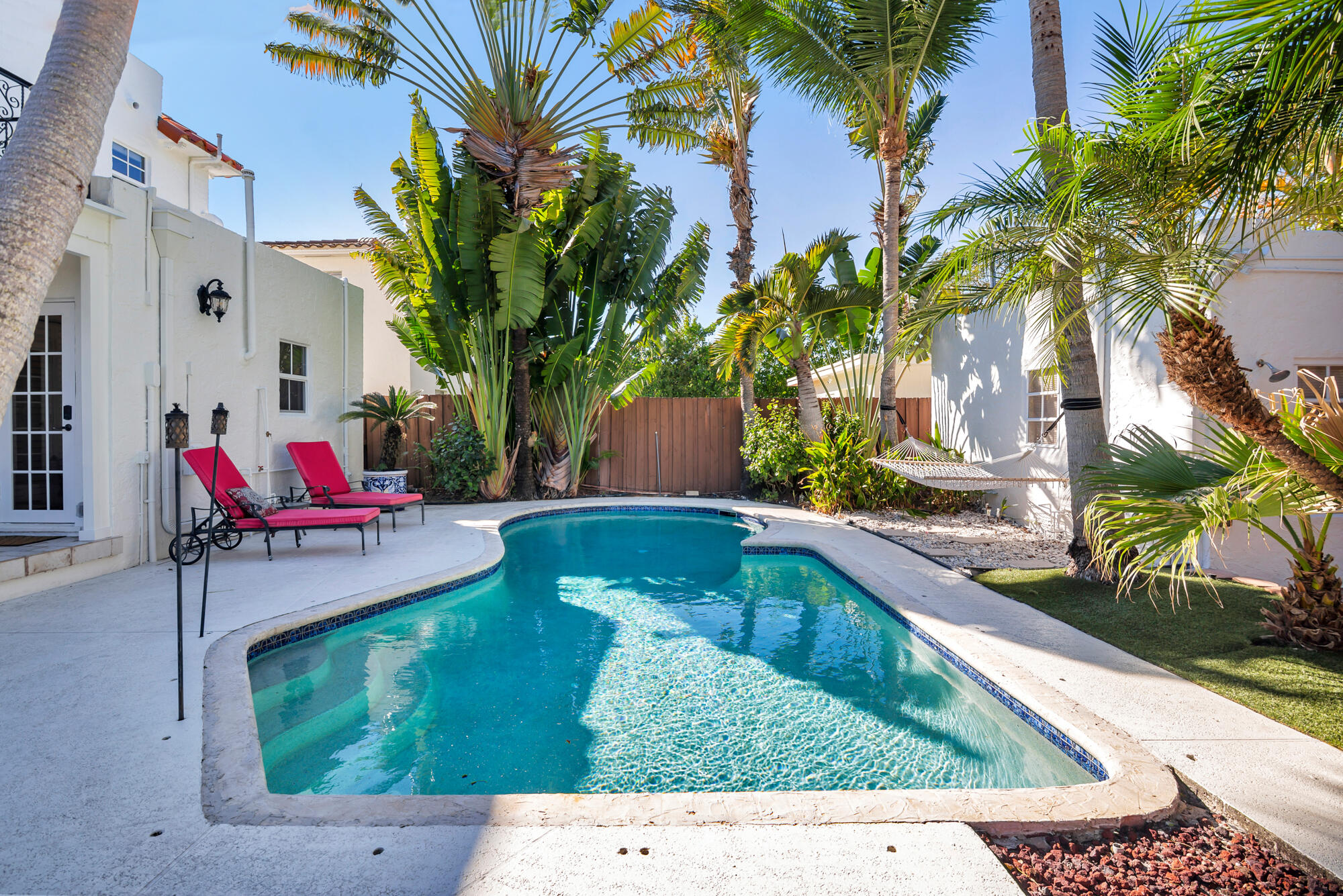 In the heart of Historic Southland Park, this enchanting Mediterranean residence blends timeless character with thoughtful renewal. Original floors and architectural details whisper the home's storied past, while a newly renovated kitchen with marble countertops and all-new appliances brings modern ease. The main house offers three bedrooms and one bath upstairs, with a second full bath on the first floor, plus a charming sunroom and balconies off both the primary suite and guest bedroom. Full hurricane-impact windows and doors in the main house.SEE MORE Beyond, a lush tropical backyard unfoldsresort-style pool, covered patio, and expansive entertaining terracesalongside a separate guest house with its own renovated kitchen and private entrance, ideal for guests, a home office, or multigenerational living. All set on a tree-lined street one block from the Intracoastal, Flagler Drive, and Lake Trail, minutes to beaches, downtown, CityPlace, and PBI.