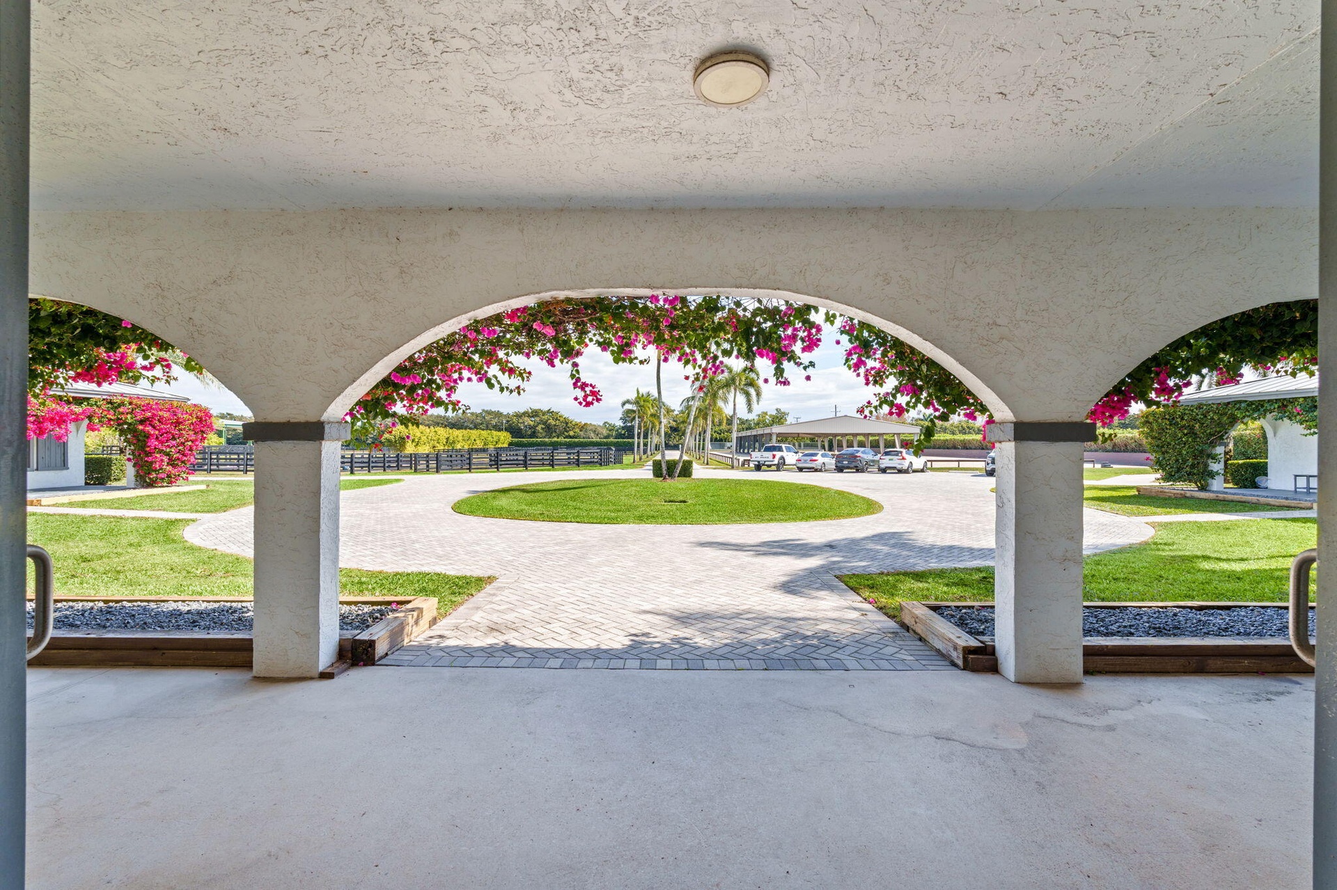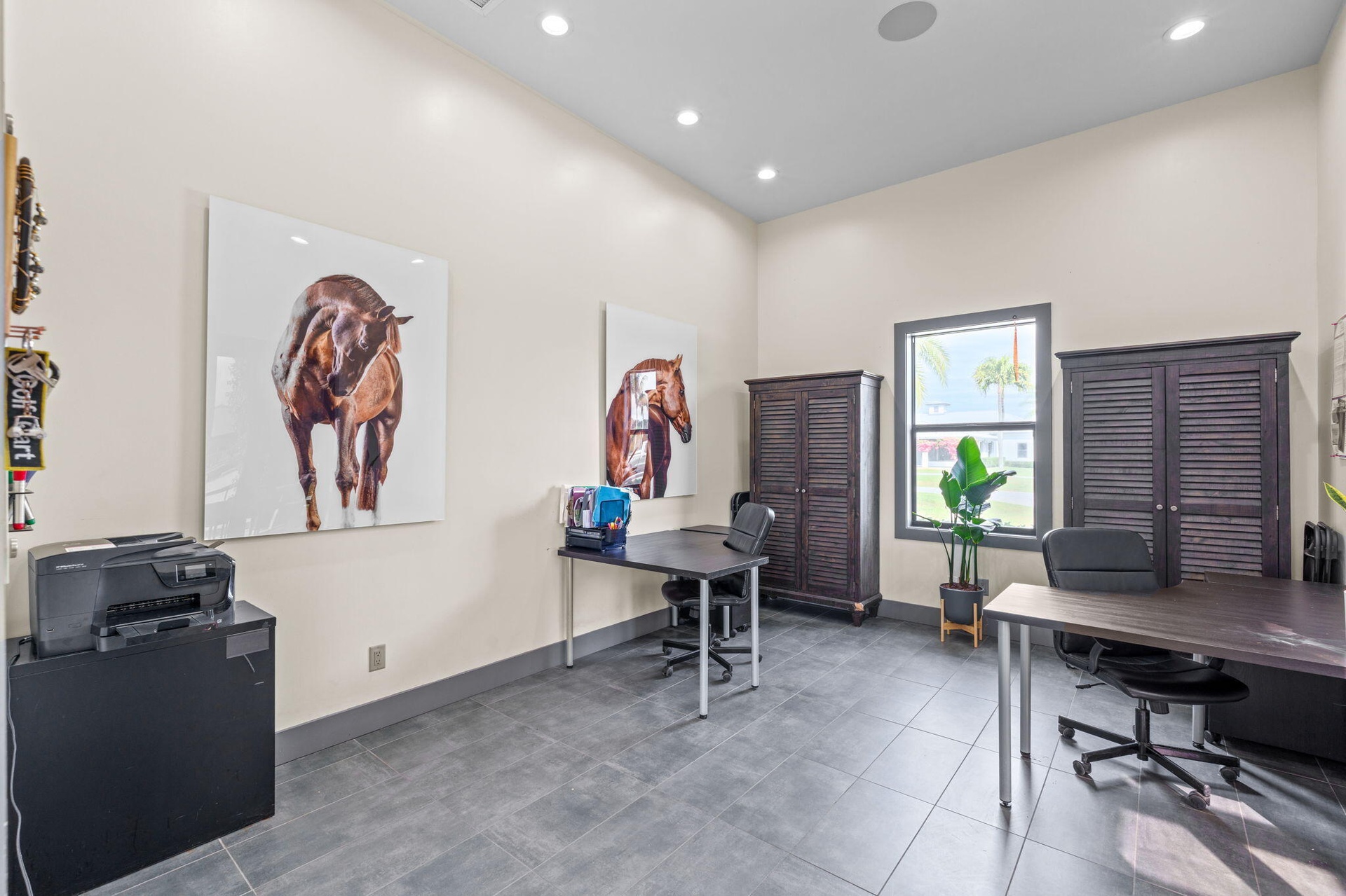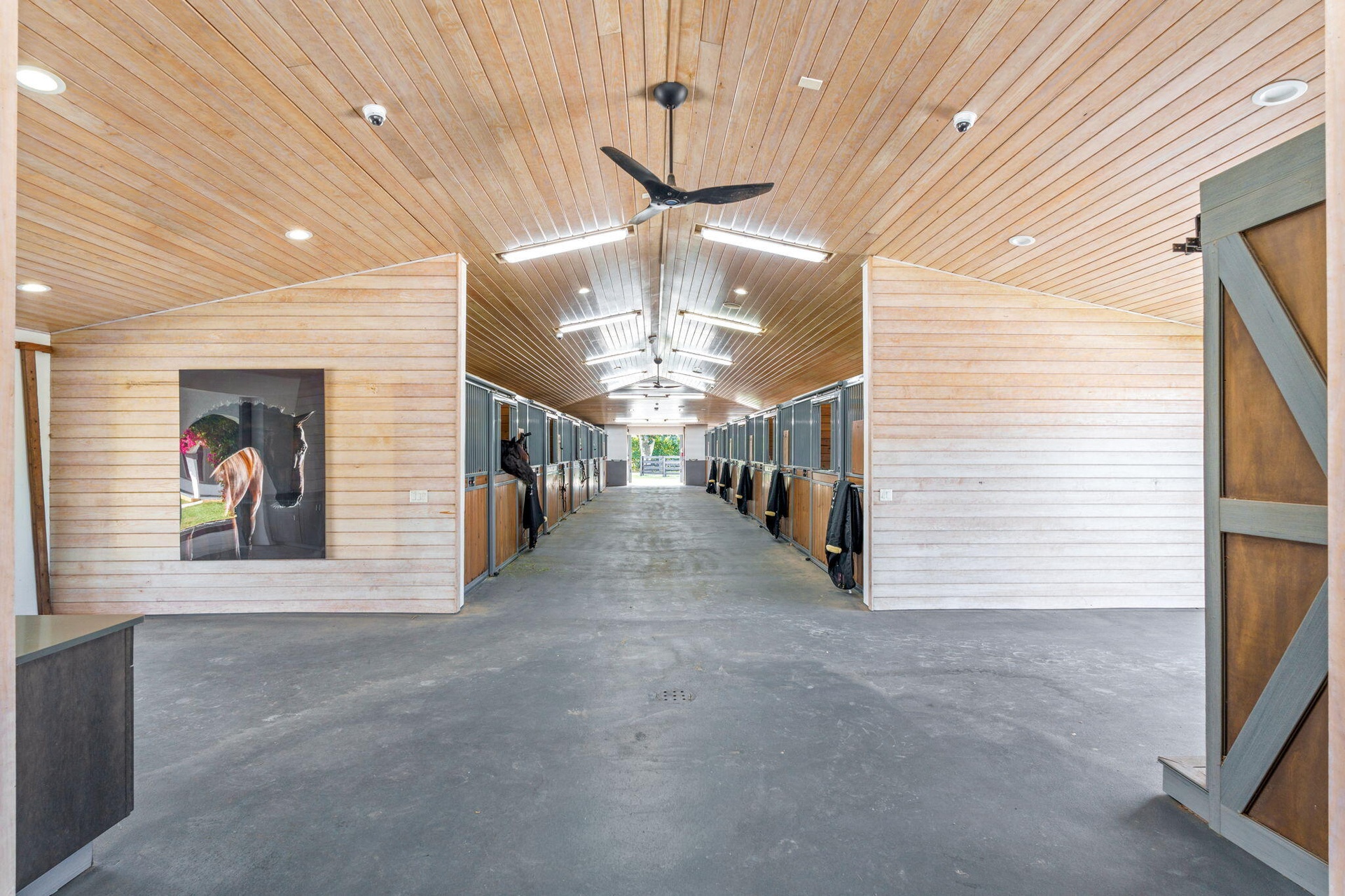 Tucked away in a quiet, secluded setting yet optimally positioned near the horse show, this exceptional farm offers the rare combination of privacy and convenience. From the moment you pass through the gates, it is clear this is a special property, framed by lush bougainvillea and beautifully curated landscaping that feels both welcoming and picturesque. Spanning just over 5 acres, the farm is thoughtfully designed and impeccably maintained. A standout feature is the oversized mirror arena, mostly covered and equipped with all-weather fiber footing, making it ideal for year-round training. The property includes 38 total stalls, with a 24-stall main barn featuring a center aisle and 14 additional stalls in a separate rear center-aisle barn. Abacus cushion stall flooring Abacus cushion stall flooring provides exceptional comfort, and the stalls feature Dutch doors that allow horses to look out. Tongue-and-groove finishes, generous storage throughout, and well-planned workspaces elevate both function and aesthetics. The layout is unlike most barns and offers a highly functional, flexible design. One side is fully owner-oriented and equipped with all amenities, while the opposite side offers a flexible configuration that can accommodate private facilities with separate workstations and tack rooms, alongside shared amenities including grooming and work areas, a feed room, and laundry, well-suited for multiple training operations. Additional amenities include a hot walker, round pen, 16 paddocks, and a fully fenced perimeter with mature clusia hedging. A shared pond provides irrigation, enhancing both sustainability and the striking façade of the property. The farm is set up for easy truck and feed delivery with a proper turnaround area and includes a hurricane-rated roll-down outbuilding. The property is supported by a full-property generator and offers four apartments, including two newly updated one-bedroom units and two studios, providing flexibility for staff or guests. With ample parking, thoughtfully separated work areas, and a picturesque setting, this farm blends beauty, efficiency, and top-tier equestrian functionality, all just a short hack to the horse showgrounds.