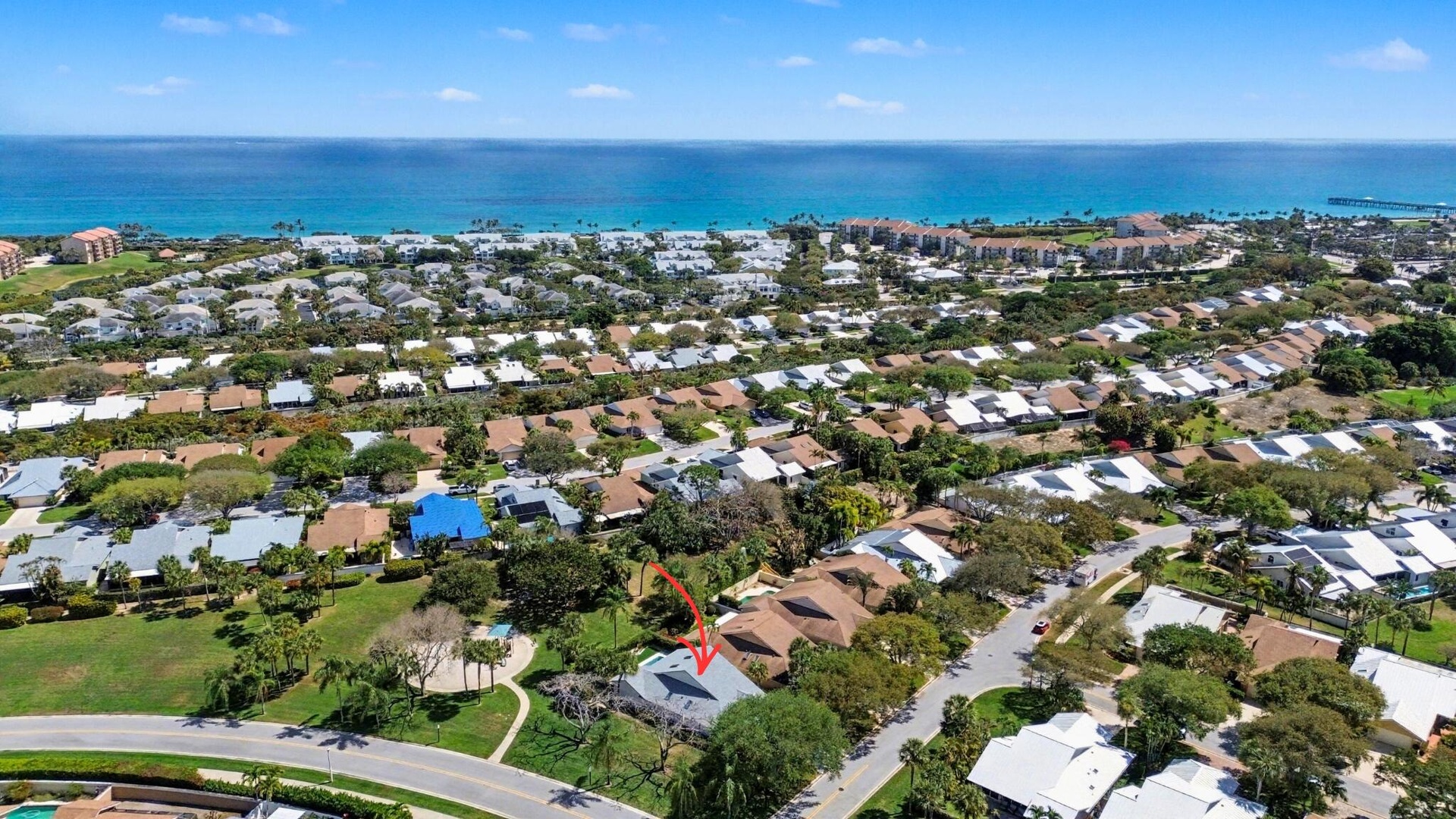 Fully renovated pool home in the highly sought-after Ridge at the Bluffs—just a short stroll to the beach. This 3BR/3BA residence blends modern design with effortless coastal living, featuring a dramatic two-story great room, open-concept layout, and a spacious loft/den ideal for a home office or flex space. The designer kitchen is equipped with KitchenAid appliances, quartz countertops, euro-style cabinetry, and a bar perfect for entertaining. Step outside to a covered patio and newly refinished private pool, creating the ultimate indoor-outdoor lifestyle. New roof (2023). Move-in ready and located in one of Jupiter's most desirable communities—this one won't last. With over 2,100 square feet of living space, this home offers a bright, open feel with soaring ceilings and quality finishes throughout, including large-format porcelain tile. The flexible floor plan provides space for both everyday living and entertaining. The Ridge at the Bluffs is known for its unbeatable location—just minutes to the ocean, parks, shopping, and dining. Whether you're searching for a primary residence or a seasonal retreat, this home checks all the boxes with style, substance, and location.