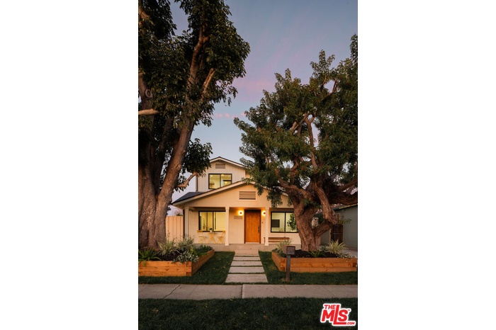 Welcome to 3444 Redwood Avenue -- set behind two sculptural, mature trees framed by custom front planters on a generous corner lot in the coveted Mar Vista Wood Streets, this meticulously restored residence by A FRAME LAB offers a rare blend of architectural calm and artisanal detail where coastal breezes drift easily through light-filled interiors. A charming deck wrapped in redwood siding introduces serene spaces where every element has been thoughtfully curated. The main level opens with a sunlit living room and flows into a flexible downstairs bedroom. The moody powder room features a cleverly concealed shower, handmade tile, Spanish porcelain, Roman Clay walls, and custom-selected hardware that underscores the home's craftsmanship-first approach. At the heart of the home, a striking kitchen and den anchor everyday living. The kitchen is centered around a dramatic Bianco Rhino Italian marble island with waterfall edge and is outfitted with a Wolf oven, Fisher & Paykel refrigerator, built-in Reverse Osmosis water system, and bespoke hardware selections throughout. An adjacent den with built-in desk provides a warm, functional space for work or retreat. Oversized sliding doors open seamlessly to a newly completed backyard designed for effortless indoor-outdoor living. Lush, thoughtfully designed planting, enclosed by a tall, completely private fence, surrounds a brand-new pool and spa with integrated pool cover, redwood-clad patio, and a built-in BBQ with sink and refrigerator creating a private, tranquil setting ideal for entertaining or quiet daily enjoyment. Upstairs, the primary suite is a Roman Clay-drenched private sanctuary with a fireplace, lofted ceilings, walk-in closet, expansive balcony, and an oversized spa-like bathroom illuminated by custom lighting and refined finishes. Also on the upper level is a second bedroom, drenched in natural light, with its own en suite bath. Design-forward lighting by Noguchi Akari, Soho Home, Plato Design, In Common With, Santa & Cole, and Bocci is layered throughout the home, complemented by curated Watermark Brooklyn fixtures and handcrafted material selections. As part of the restoration, the home includes all-new windows, doors, HVAC, and a fully integrated smart-home system with security cameras, indoor/outdoor speakers, and a universal Tesla electric car charger. Completing the property is a fully detached and permitted 1-bedroom, 1-bath ADU with its own full kitchen, laundry, and Watermark finishesoffering meaningful income potential, guest accommodations, or flexible living options without compromise. Ideally located just blocks from Beethoven Market, Bluey's, and Penmar Golf Course, and moments from the best of Venice and Ocean Park, the home is also situated within the coveted Walgrove Avenue Elementary School district. A turnkey, design-driven coastal compound delivering craftsmanship, privacy, walkability, and a rare built-in value add in one of Mar Vista's most sought-after neighborhoods.