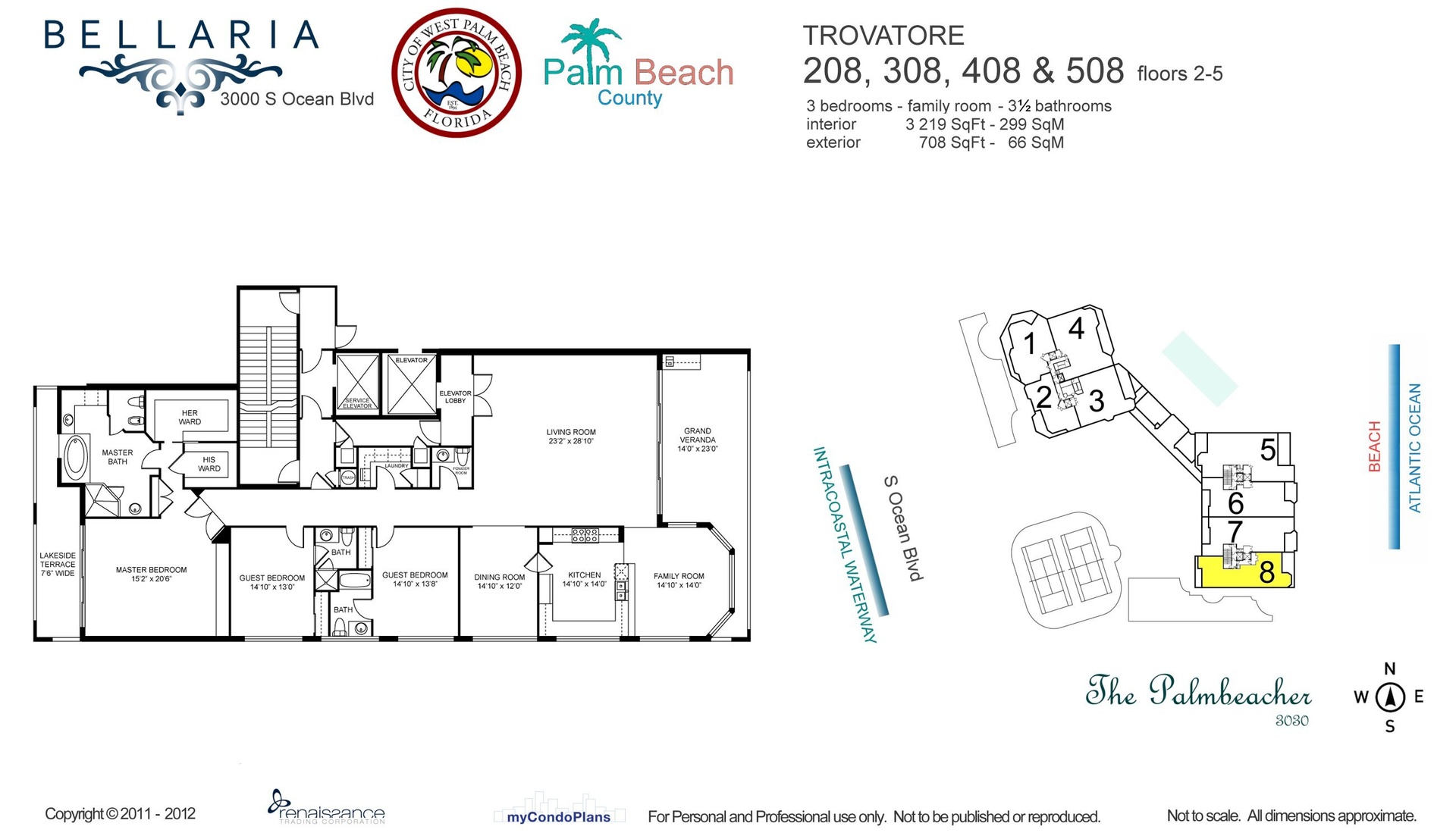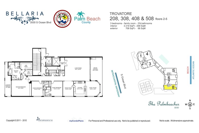 Rare direct oceanfront unit, in the coveted Bellaria, known for its concierge-level service. Grand living in this 3 BR, 3219 sf unit with elevator right to your unit, high ceilings, spacious rooms and beautiful finishes. You just can't get closer to the water: Spectacular ocean views from eastern balcony, living room, family room and kitchen, and gorgeous sunset views from the western balcony and master bedroom. Chef's kitchen completes the experience with Sub Zero refrigerator, Thermador gas range, Wolf oven, Cove dishwasher and built-in Miele coffee bar. Must see! No waiting period for rentals but no pets allowed for tenants.