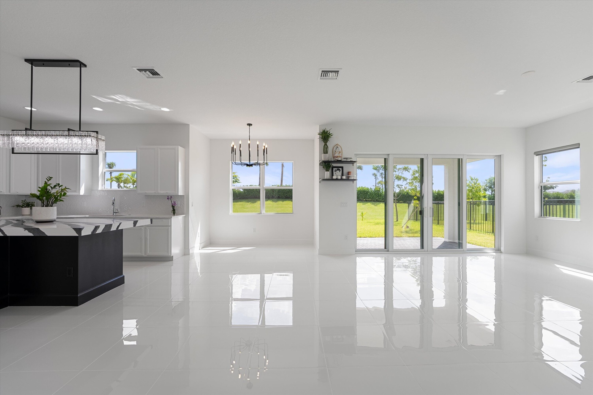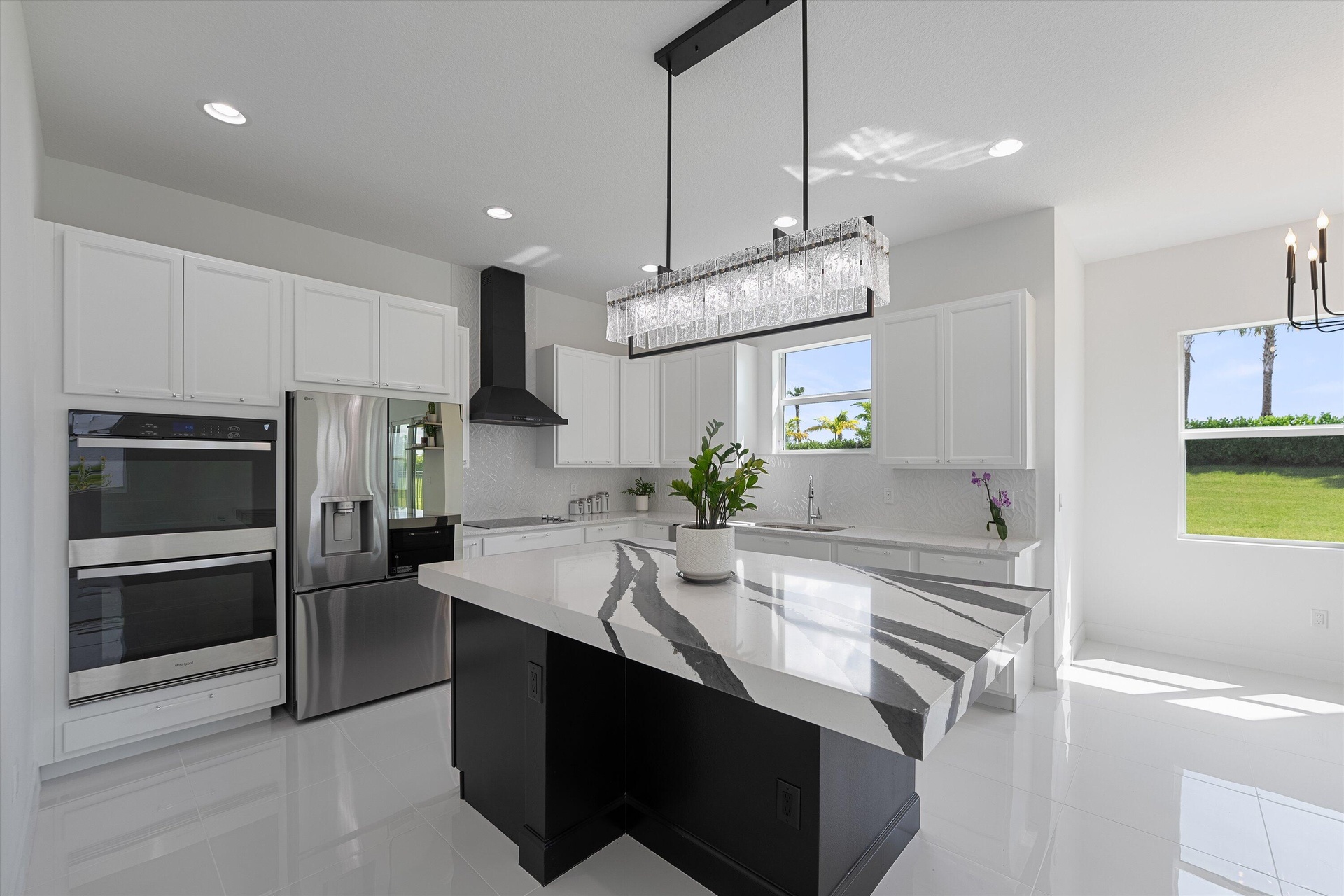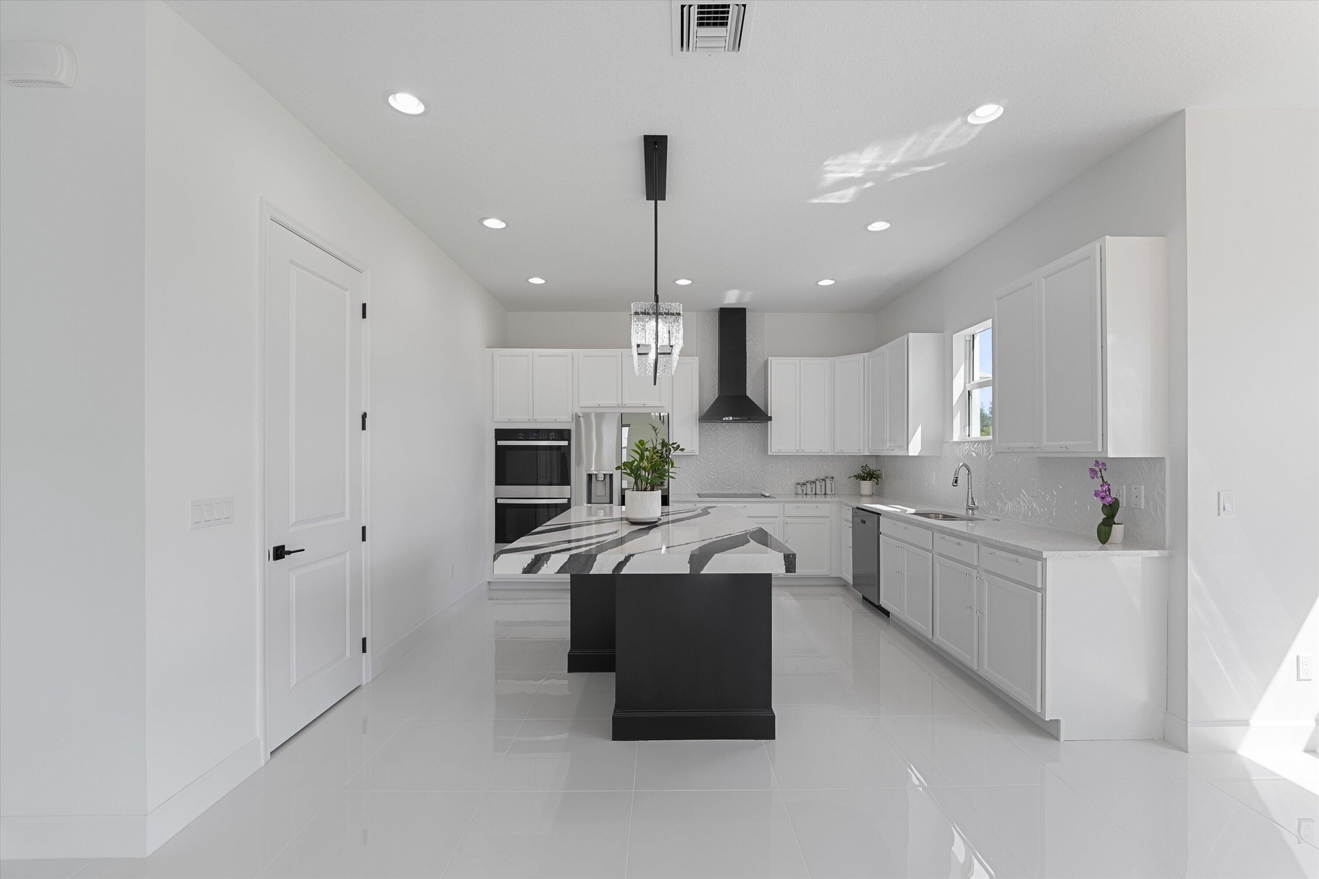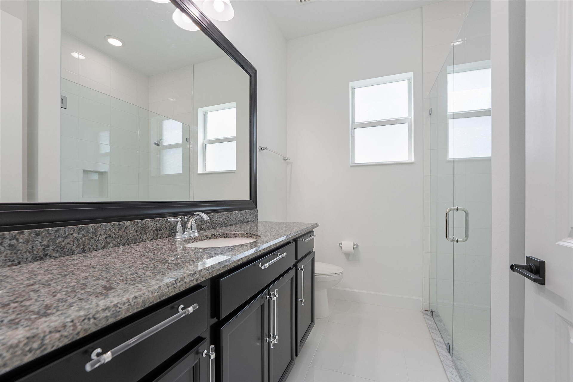 Welcome to this stunning Laurel Model two-story home with a balcony in the highly sought-after Orchards community in Westlake, Florida. With four bedrooms + Loft , three bathrooms and a three-car garage, this residence is filled with numerous upgrades and exudes a clean, modern aesthetic. As you approach the striking black double entry doors, the sense of luxury is immediate. Inside, the living area greets you with glossy white floors, soaring ceilings, and an abundance of natural light, enhancing the open and airy feel. The kitchen is a chef's dream, featuring white shaker cabinets with sleek white quartz countertops along the perimeter, a large closet pantry, and black shaker cabinets on the island for a dramatic contrast. Equipped with all-new stainless steel appliances, including a double wall oven and microwave complemented by a striking black hood, it epitomizes modern elegance. A spacious kitchen island, topped with a contemporary black and white quartz countertop, offers additional seating, while the kitchen also allows for a cozy breakfast area with a window view. The ample dining space and large family room with sliding glass doors provide seamless indoor-outdoor living, overlooking a vast backyard with extended pavers, perfect for relaxation or entertaining. Downstairs, you'll find a spacious bedroom with a walk-in closet, offering flexibility for guests or home office needs. Adjacent to this bedroom is a well-appointed full bathroom featuring black cabinets with upgraded pulls, a granite countertop with sleek silver fixtures, a beautifully framed mirror, and a seamless glass shower with elegant white tiles. Upstairs, grey wood grain ceramic tile extends throughout the entire level, leading you to a versatile loft area and the luxurious master suite. The master bedroom, with a tray ceiling, boasts a sitting area with impressive 10-foot ceilings. From the master suite, step out onto a covered balcony that overlooks the serene backyard. The master bathroom is spacious and stylish, offering dual sinks separated by a corner shower, black cabinets, sleek silver fixtures, and gray shower tiles with matching floor tiles. Its clean white tile flooring adds a touch of sophistication. Two additional bedrooms upstairs include a walk-in closet and another with a standard closet, both offering comfort and ample space. The upstairs bathroom features white shaker cabinets, gray granite countertops with black pulls, silver fixtures, and a white framed mirror, with a separate tub and toilet room. The shower is beautifully tiled in a horizontal pattern, with a clean white tile floor. The conveniently located laundry room includes brown shaker cabinets, granite countertops, and an upgraded washer and dryer. Experience the perfect blend of modern design and comfortable living in this exceptional rental home. ** FENCE HAS BEEN INSTALLED! **